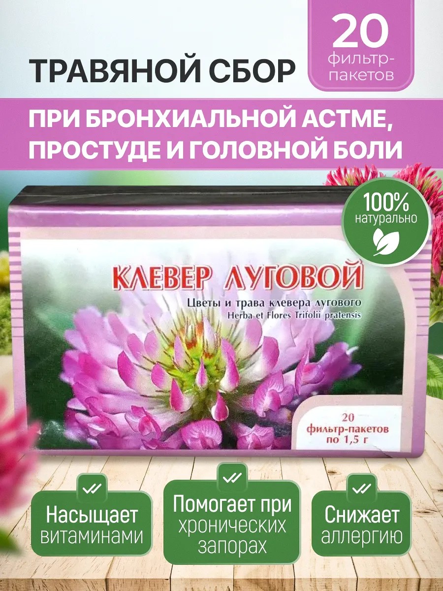 В клевере луговом ценными для здоровья человека веществами обладают все части растения - от корней до цветков. Растение достаточно хорошо изучено и включено в реестр лекарственных средств традиционной медициной. И, конечно, давно и широко применяется народными целителями и гомеопатами.Цветки и трава клевера ценятся за противоопухолевую и противовоспалительную активность, потогонные и вяжущие свойства, способность снижать аллергические реакции и устранять их симптомы.В составе растения обнаружено 12 разновидностей эфирных масел, гликозиды, дубильные вещества, витамины ряда групп, пигменты, несколько видов органических кислот, важные микроэлементы. Клевер может использоваться при хронических запорах и воспалительных заболеваниях мочеполовой системы.Наружно настои и отвары клевера лугового применяют в виде ванночек и спринцеваний при вагинальных раздражениях и инфекциях.Обладает способностью чистить кровь и изгонять паразитов.Не является лекарственным средством. Замечательный новогодний подарок для себя и близких!