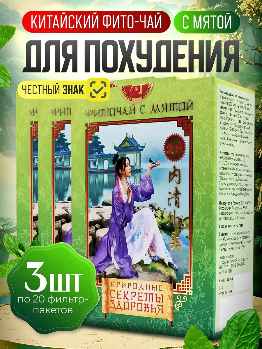 Flying Swallow Mint Chinese Tea is a drainage drink for weight loss that helps remove excess fluid from the body and eliminate swelling. This sugar-free herbal tea cleanses the intestines and has an enzymatic effect that eliminates indigestion. This cleansing and detoxifying preparation has a pronounced diuretic and mild laxative effect, promoting healthy weight loss for both men and women. This dietary herbal tea bag also cleanses the liver and gallbladder, reduces fat levels in blood vessels and blood, and promotes healthy skin. This cleansing tea bag can be used as a natural laxative, choleretic, and fat burner, while also improving microflora. This food supplement is ideal not only for those losing weight and dieting, but also for those following a healthy diet. This gentle fat-burning, slimming remedy helps eliminate swelling and lose weight without harming your health. This detoxifying supplement tones, kickstarting the fat-burning process, and helps you lose fat evenly from your stomach, arms, and legs. This calorie-free tea drink improves metabolism and helps flush water from the body—an effective way to burn cellulite. It eliminates bloating, constipation, and speeds up digestion. Unlike tablets or capsules, tea bags allow you to enjoy a delicious fruity herbal drink. This herbal supplement is an excellent choice for gentle and safe weight loss!