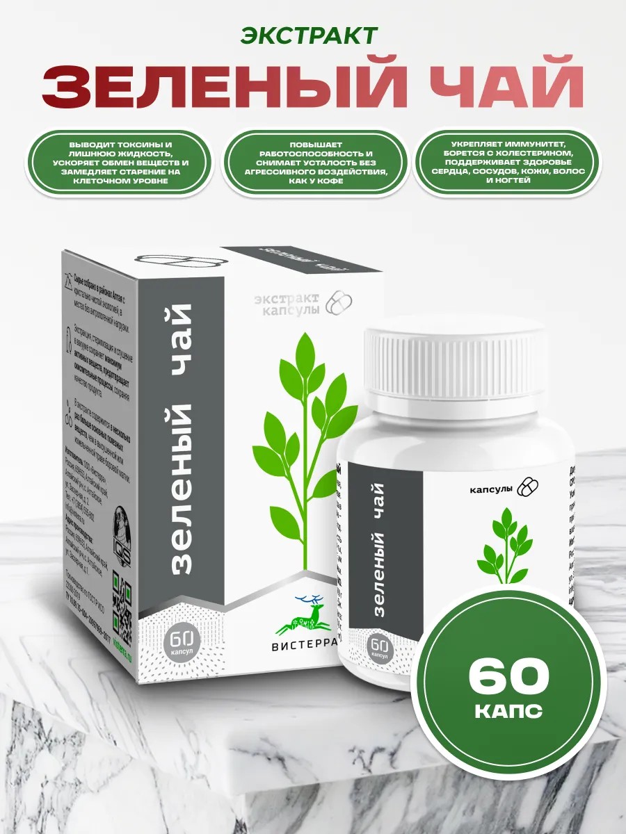 СОСТАВ: Экстракт листа зеленого чая, капсула желатиновая.