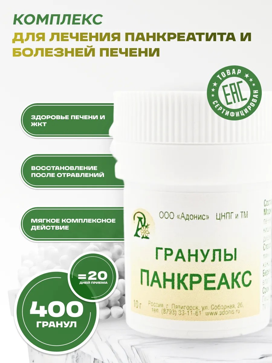 A homeopathic granulated multi-component remedy for the treatment of pancreatitis, liver disease, eating disorders, and biliary tract disorders. It is effective in the treatment of poisoning and the consequences of poor nutrition and alcohol abuse. Ingredients: Arsenicum album C6 - improves the patient's condition in severe debilitating diseases, severe weakness, restores stomach function after food poisoning and diseases of the pancreas and liver. Carbo vegetabilis C6 - is prescribed for chronic disorders due to alcoholism and excess in food. Helps restore strength and weight after acute pancreatitis. Podophyllum C3 - treats diseases of the liver, pancreas, and gallbladder disorders. Phosphorus C6 - affects blood circulation, digestion, and respiratory organs. Prescribed for liver diseases accompanied by fever, enlargement of the organ, and profuse sweating. Directions: Dissolve 7 lozenges sublingually 30 minutes before meals 3 times daily. In severe cases, dissolve every 15 minutes, but no more than 8 times in a row. Shelf life: 5 years. Contraindications: None. Each package contains 400 granules. This product is not a medicine.