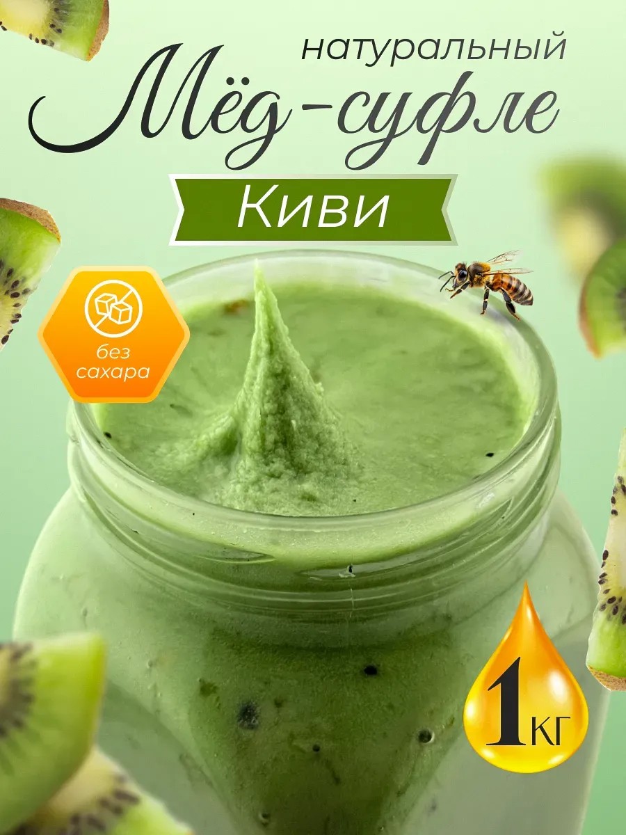 Kiwi creamed honey soufflé is a delicate dessert that melts in your mouth, revealing the rich flavor of natural honey and an airy, creamy texture. A delicate whipping process creates a light and rich texture, while preserving all the beneficial properties. Kiwi creamed honey is the perfect complement to morning tea or coffee, adds sophistication to your desserts, and is perfect for a snack.