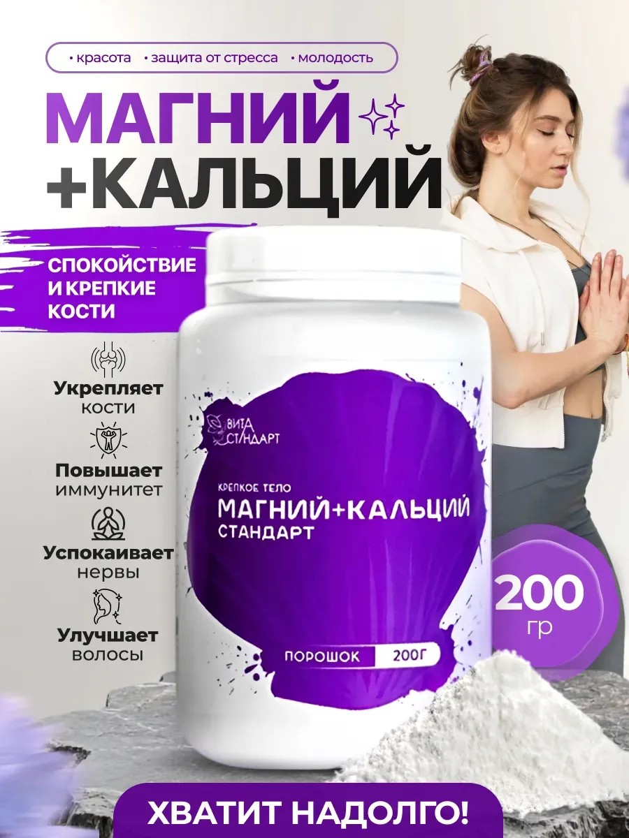 "MAGNESIUM + CALCIUM-STANDARD" is a mineral complex that provides an additional source of calcium and magnesium in an optimally combined, bioavailable, easily absorbed form of magnesium citrate and calcium citrate. This combination is unique because calcium and magnesium, while having opposing effects, help maintain balance in the body. Calcium, which is important for bones and other systems, stimulates nerves and tenses muscles. Magnesium, which is also important for many human systems, calms nerves and relaxes muscles. During stress, calcium levels in cells increase, and magnesium displaces them, promoting relaxation. Calcium and magnesium interact constantly during heartbeats and breathing. Calcium must be regularly supplied in adequate quantities because it is involved in bone formation and blood clotting. It also supports the nervous and cardiovascular systems. Magnesium helps normalize the functioning of the nervous system and muscles. It maintains a stable heart rhythm, helps strengthen the immune system and bone structure. Magnesium is also involved in blood sugar regulation and blood pressure normalization. Therefore, "MAGNESIUM-CALCIUM-STANDARD" combines these two macronutrients. APPLICATION: An additional source of magnesium and calcium, not a medicine. COMPOSITION OF THE READY DRINK: magnesium citrate, calcium citrate. RELEASE FORM: A water-soluble white powder, odorless, sour taste. POWDER COMPOSITION: magnesium carbonate, calcium gluconate, acidity regulator - citric acid. CONTRAINDICATIONS: Individual intolerance to the components of the Complex food supplement, pregnancy, breastfeeding. DURATION OF ADMINISTRATION: 3-4 weeks, if necessary, administration can be repeated. STORAGE CONDITIONS: Store in a dry place, protected from direct sunlight, out of the reach of children, at a temperature not exceeding +25C. SHELF LIFE: 24 months. DIRECTIONS FOR USE: Adults and children over 14 years of age should take 1 teaspoon (5 g), thoroughly stirred in a glass (200 ml) of boiling water, 1-2 times a day during or after meals. With the optimal dose, the stool should be soft, with a comfortable feeling in the stomach. People with high acidity and gastrointestinal problems should take after meals. Individual dosage can be adjusted. METHOD OF PREPARATION: Pour 1 teaspoon (5 g) of powder into a glass, pour boiling water, stir with a spoon until it is completely dissolved and until gases are released. The reaction will result in a clear drink of magnesium citrate and calcium citrate with a pleasant neutral or slightly acidic taste. A small amount of natural sediment is allowed. The taste of the drink may vary slightly in each batch.