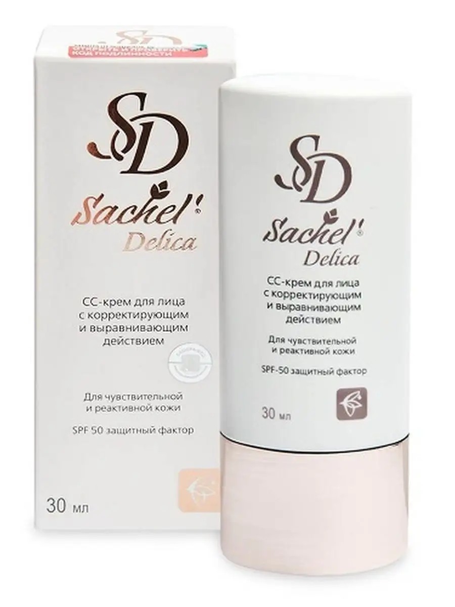 Sachel Delica СС-крем для лица с корректирующим и выравнивающим действием для чувствительной и реактивной кожи Сашера-мед 30 мл. Наноламеллярный СС-крем «Sachel Delica» не содержит пигмента, в составе присутствуют светоотражающие кристаллы морского коллагена, которые имеют свойство хайлайтера, защитного фактора SPF 50, стимулятора процессов коллагеногенеза и восстановления коллагеновых и эластиновых волокон. Деликатная формула комплекса разработана в качестве самостоятельного дневного средства для нормализации архитектоники кожи, устранения эстетических нарушений кожного рельефа и структуры кожи, предотвращения воздействия вредных факторов окружающей среды и реактивности кожи, оказывает комплексное уходовое, ревитализирующее, корректирующее действие:активно увлажняет. Замечательный новогодний подарок для себя и близких!