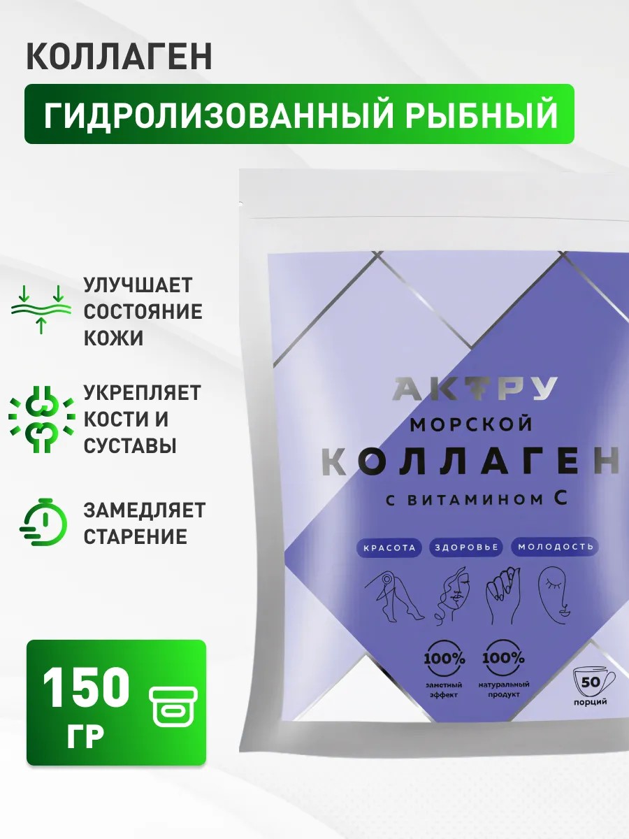 Гидролизованный рыбный коллаген, разобранный на цепочки пептидов - качественный источник аминокислот для питания организма.