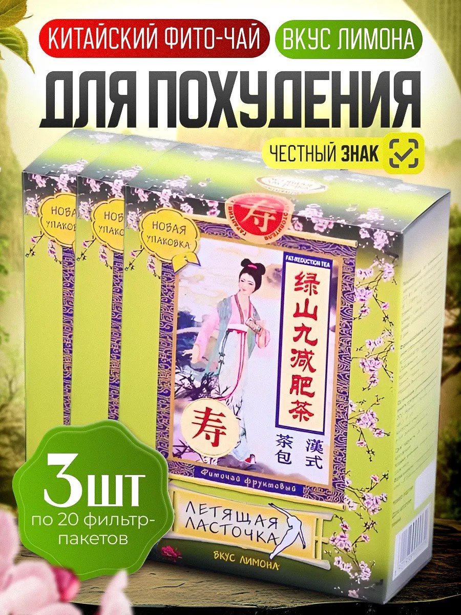 Flying Swallow "Lemon" Chinese tea is a drainage drink for weight loss that helps remove excess fluid from the body and eliminate swelling. This sugar-free herbal tea cleanses the intestines and has an enzymatic effect that eliminates indigestion. This cleansing and detoxifying preparation has a pronounced diuretic and mild laxative effect, promoting healthy weight loss for both men and women. This dietary herbal tea bag also cleanses the liver and gallbladder, reduces fat levels in blood vessels and blood, and promotes healthy skin. This cleansing tea bag can be used as a natural laxative, choleretic, and fat burner, while also improving microflora. This food supplement is ideal not only for those losing weight and dieting, but also for those following a healthy diet. This gentle fat-burning, slimming remedy helps eliminate swelling and lose weight without harming your health. This detoxifying supplement tones, kickstarting the fat-burning process, and helps you lose fat evenly from your stomach, arms, and legs. This calorie-free tea drink improves metabolism and helps flush water from the body—an effective way to burn cellulite. It eliminates bloating, constipation, and speeds up digestion. Unlike tablets or capsules, tea bags allow you to enjoy a delicious fruity herbal drink. This herbal supplement is an excellent choice for gentle and safe weight loss!