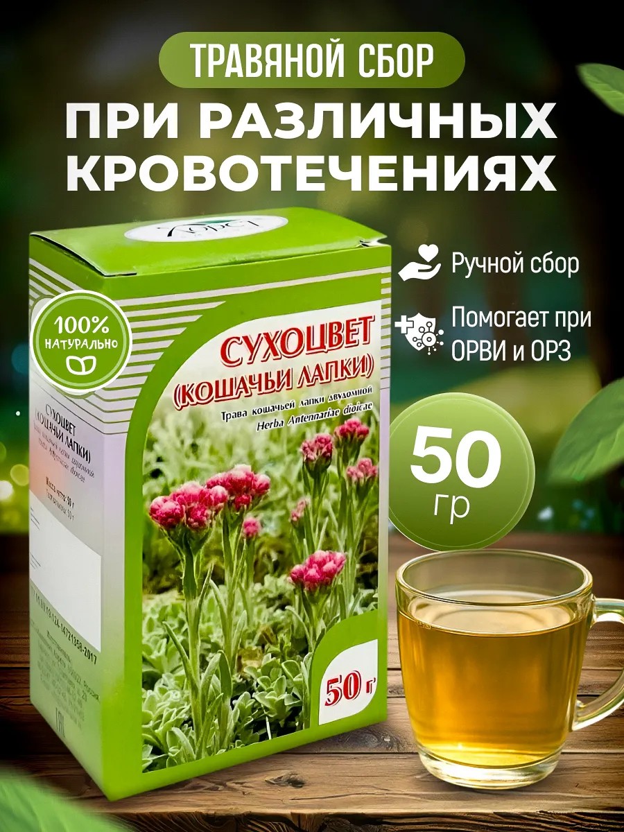 Этот сильный союз даров земли – настоящий антидепрессант для души и тела. Кошачья лапка нежно позаботится о вашем спокойствии, а бессмертник подарит долголетие.