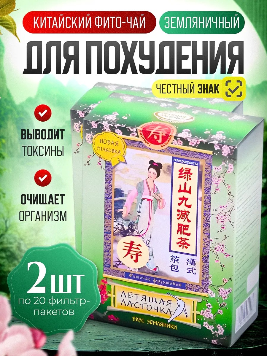 Flying Swallow "Strawberry" Chinese tea is a drainage drink for weight loss that helps remove excess fluid from the body and eliminate swelling. This sugar-free herbal tea cleanses the intestines and has an enzymatic effect that eliminates indigestion. This cleansing and detoxifying preparation has a pronounced diuretic and mild laxative effect, promoting healthy weight loss for both men and women. This dietary herbal tea bag also cleanses the liver and gallbladder, reduces fat levels in blood vessels and blood, and promotes healthy skin. This cleansing tea bag can be used as a natural laxative, choleretic, and fat burner, while also improving microflora. This food supplement is ideal not only for those losing weight and dieting, but also for those following a healthy diet. This gentle fat-burning, slimming remedy helps eliminate swelling and lose weight without harming your health. This detoxifying supplement tones, kickstarting the fat-burning process, and helps you lose fat evenly from your stomach, arms, and legs. This calorie-free tea drink improves metabolism and helps flush water from the body—an effective way to burn cellulite. It eliminates bloating, constipation, and speeds up digestion. Unlike tablets or capsules, tea bags allow you to enjoy a delicious fruity herbal drink. This herbal supplement is an excellent choice for gentle and safe weight loss!