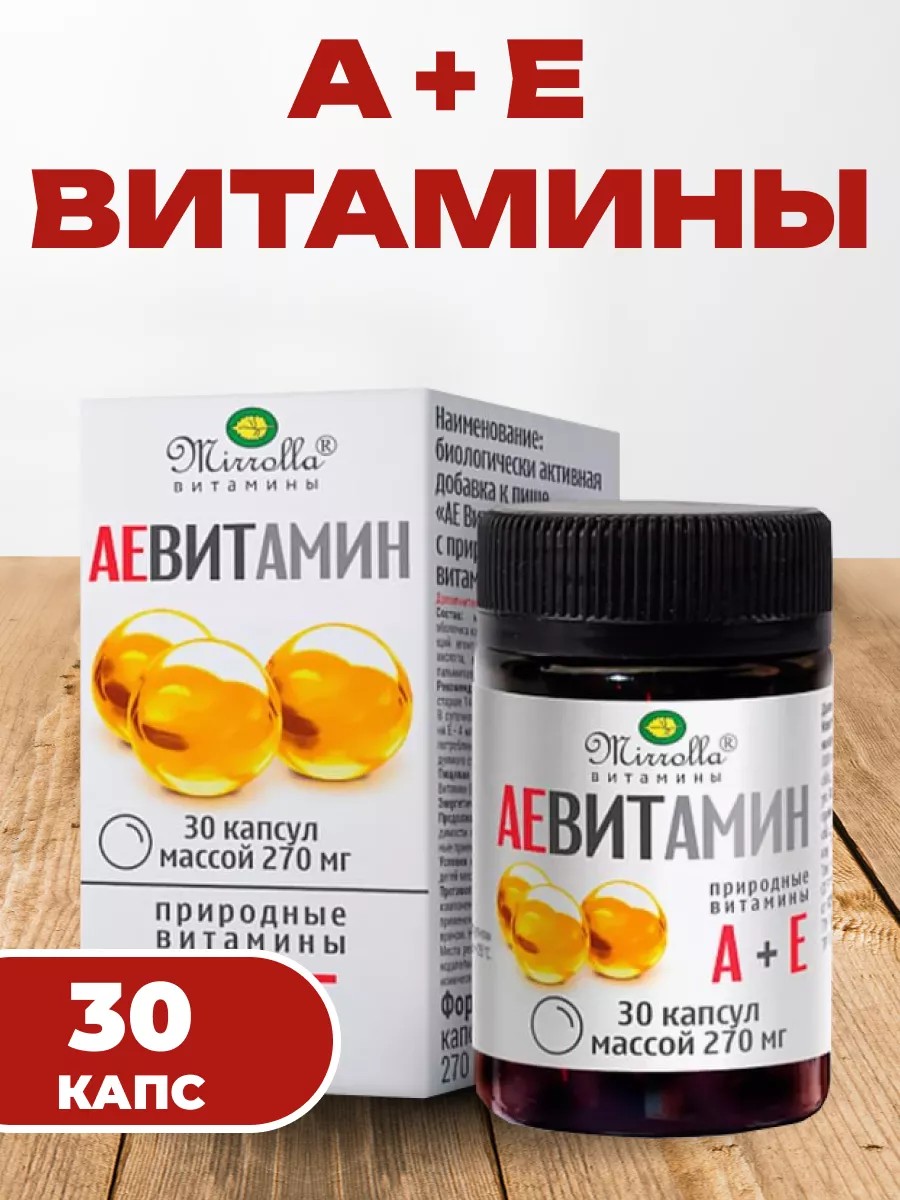 АЕвитамин от «Мирролла» обеспечит организму дополнительный источник витаминов А и Е, так необходимых для его полноценного функционирования, крепкого здоровья и поддержания красоты.
