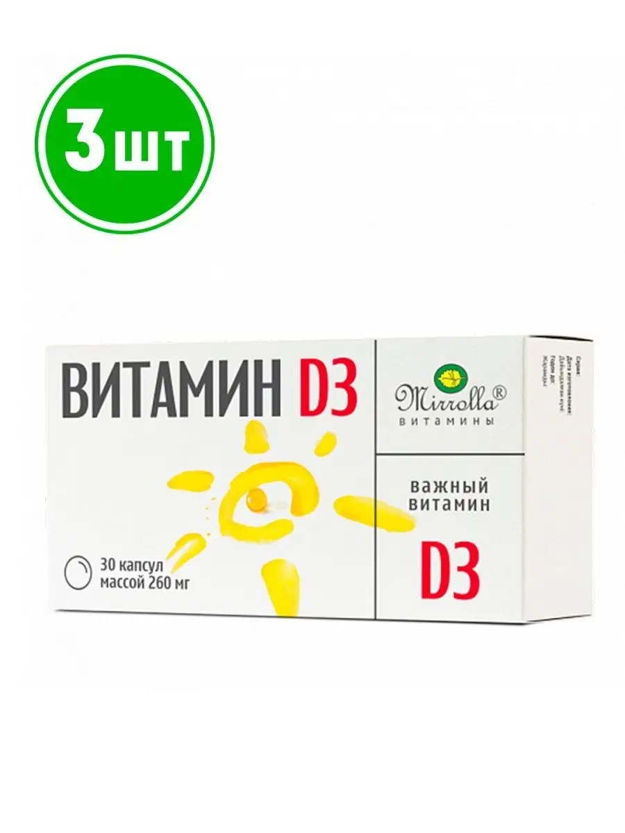 Мед и Конфитюр Витамин D3 Mirrolla 30 капс. 3шт