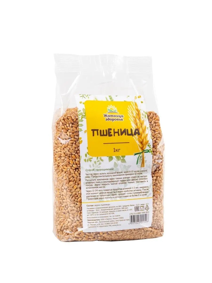 Пшеница для проращивания 1 кг. Пшеница -главный источник здоровья, жизненных сил и молодости. Она является неизменной составляющей рациона большинства систем правильного питания. Полезные свойства заключаются в ее способности восстанавливать и омолаживать все системы организма, а также стабилизировать работу важных процессов. Злак обеспечивает продуктивную работу мозга и дарит энергию мышечным тканям. Он заряжает бодростью, улучшает качество и продолжительность жизни.. Пророщенная пшеницане просто полезный продукт, это еще и биологически активная натуральная добавка, практически не имеющая противопоказаний и полностью усваивающаяся организмом. Пророщенная пшеница - это уникальный продукт. Её можно употреблять и в сыром виде и в составе различных блюд. Чаще всего проросшую пшеницу добавляют в салаты, супы, делают каши, кисели и различные отвары. Из зерен пшеницы также готовят много полезных и вкусных блюд: выпечку, хлопья, различные гарниры, каши, супы, салаты, запеканки.. Состав:. Отборное зерно пшеницы.. Способ применения:. Чистое зерно залить холодной водой, через 8-10 часов сменить воду. Затем рассыпать тонким слоем на чистую влажную ткань и накрыть таким же способом, поставить в темное место, через 12-24 часа появятся ростки, ростки хранить в холодильнике.. Энергетическая ценность:. Белки - 11,2 г, жиры - 2,1 г, углеводы - 55,2 г.. Калорийность:. 290 ккал.. Срок годности:. 12 месяцев.. Данная продукция не является лекарственным средством. Замечательный новогодний подарок для себя и близких!
