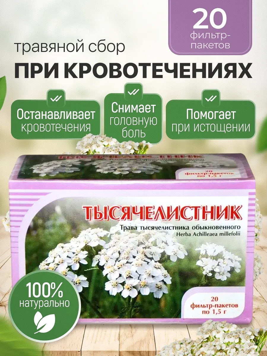 Главное, но далеко не единственное, свойство тысячелистника как лекарственного растения - способность останавливать кровотечения. Кровоточивость десен, геморрой, травмы, маточные кровотечения, кровавый понос, т.е. любое заболевание, сопровождающееся кровотечением - все это случаи, в которых человеку может придти на помощь тысячелистник. Пи этом действует он мягко и даже при длительном применении крайне редко вызывает побочные эффекты. При этом свертывающая способность растения настолько велика, что им можно вылечить даже людей, страдающих другими кровотечениями (например, носовыми), доводящими их до истощения. Очень хорошо действует тысячелистник на нервную систему, устраняет истерию, ипохондрию. Снимает головную боль, особенно возникающую на фоне повышенного давления. Противопоказания: Повышенная свертываемость крови, склонность к образованию тромбов, беременность, возраст до 6 лет, повышенная желудочная кислотность, индивидуальная аллергическая непереносимость.Данная продукция не является лекарственным средством. Замечательный новогодний подарок для себя и близких!