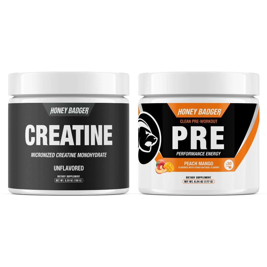 Honey Badger Pre Workout Powder | Micronized Creatine Monohydrate | Muscle Growth & Recovery | Natural Energy for Men & Women | Sugar Free & Paleo | 30 Servings