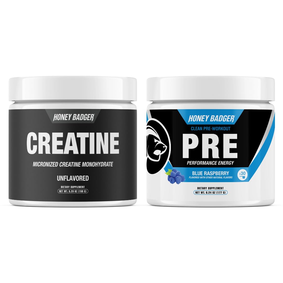 Honey Badger Pre Workout Powder | Micronized Creatine Monohydrate | Muscle Growth & Recovery | Natural Energy for Men & Women | Sugar Free & Paleo | 30 Servings