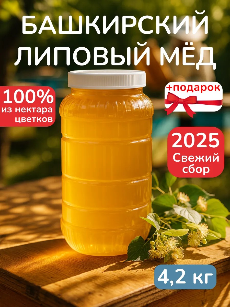 Мёд с пасеки Исламова Мёд башкирский липовый 4200 г, сбор 2025 + подарок