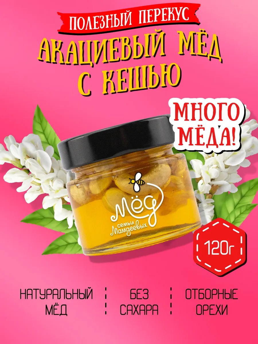 Акациевый мед с кешью от семьи Мамдеевых производится из нектара, полученного из цветков акации, собирается в экологически чистом районе республики Адыгея. Имеет изысканный душистый запах, мягкий насыщенный вкус, цвет – от светло-жёлтого до янтарного. Разрешен диабетикам, для его усвоения не используется инсулин. У аллергиков отсутствует реакция после приема акациевого мёда. Мед натуральный акациевый с кешью положительно влияет на здоровье, стабилизирует давление, укрепляет сердце с сосудами, является природным антисептиком, укрепляет иммунную систему, помогает при простудных заболеваниях, повышает гемоглобин, способствует похудению, заряжает энергией. Орехи в меду оказывают благотворное воздействие на организм за счет содержания в кешью витаминов А, В2, В1, а также повышенного содержания железа, цинка, фосфора, кальция, жирных кислот омега-3. Также в ассортименте магазина Мёд семьи Мамдеевых вы можете приобрести: акациевый, аккураевый, горный, липовый, васильковый мед, джантаковый (мед верблюжьей колючки), горный мед из Тянь-шань, гречишный мед, донниковый, дягилевый мед, золотарниковый, кавказский горный мед, кипрейный, клеверный, кориандровый, лавандовый, мед левзеи, лесной мед, луговой цветочный мед, майский мед, мед леспедеци, мед плюща горного, мед с вишней, мед с грецким орехом, мед с земляникой, мед с имбирем, мед с кедровой живицей, мед с кедровым орехом, мед с клюквой, мед с курагой, мед с малиной, мед с маточным молочком, мед с мумиё, мед с облепихой, мед с пергой, мед с прополисом, мед с пыльцой, мед с фундуком, мед с черникой, мед с черной смородиной, чернокленовый мед, молочаевый, одуванчиковый, померанцевый, приморский липовый, рапсовый, таежный, тимьяновый, фацелиевый, хлопковый, шалфейный, шиповниковый, эспарцетовый мед. Запросы по которым можно найти наш мед: натуральный мед, мед от пчеловодов, мед без сахара, густой мед, жидкий мед, светлый мед, темный мед, мед с пасеки, качественный мед, ПП, ЗОЖ, диета, диетический продукт, постный продукт, фермерский мед, мед без сахара, к чаю, десерт, без лактозы, без ГМО, натуральная сладость, натуральный десерт, без глютена, без консервантов, без красителей, sugar free, с кашей, с тостом, к чаю, выпечка, завтрак, живой продукт, десерт, пп питание, суперфуд, зож еда, вегетарианские продукты, веганские продукты, спортивное питание, поддержание иммунитета, укрепление иммунитета, детокс, свежий мед, мед нового урожая, продукты набор, подарок, полезный подарок, съедобный подарок. Продукты питания, еда, правильное питание, продукты, детокс, правильное питание, мед, суперфуд, для меда, мед липовый, продукты для правильного питания, пп продукты набор, липовый мед, подарок семье, натуральный мед, мед башкирский липовый, зож, без сахара, вегетарианский продукт, диетический, веганский, сладости без сахара, свежий мед, подарок учителю, маме, бабушке, папе, оригинальный подарок, пп сладости без сахара, пп продукты без сахара, сладости без сахара, без сахара сладости, пп сладости.