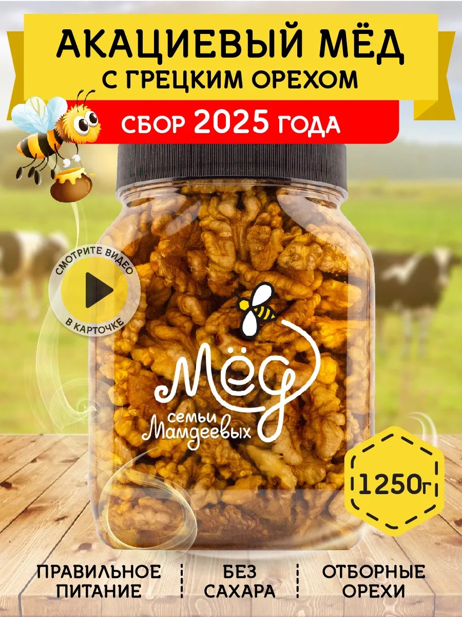 Мёд семьи Мамдеевых Акациевый мед с грецким орехом, 1250 г, сладости