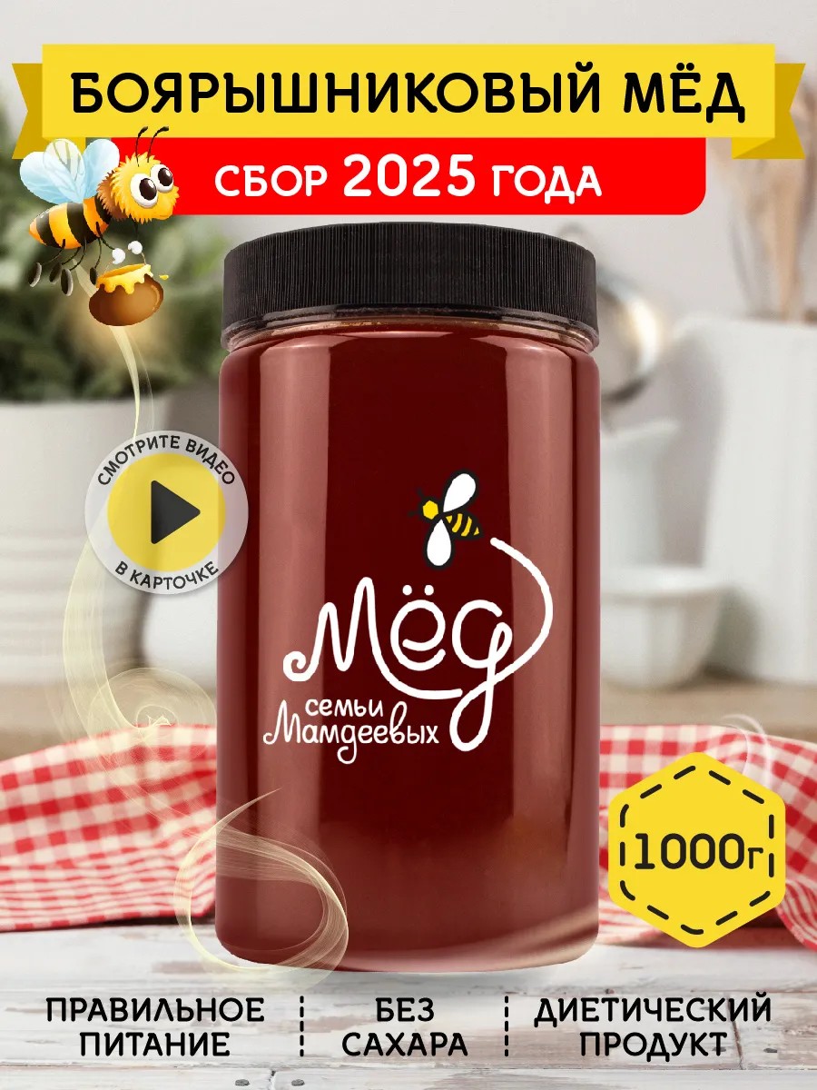 Мёд семьи Мамдеевых Боярышниковый мед, 1000 г, веган, зож