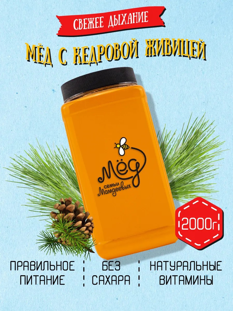 Мёд семьи Мамдеевых Мед с кедровой живицей, 2 кг, пп, сладости
