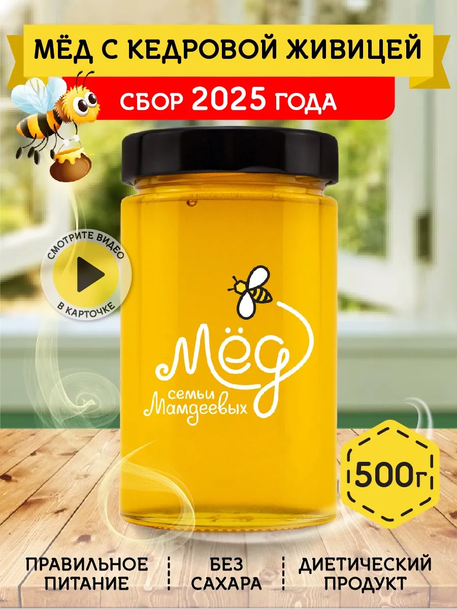 Мёд семьи Мамдеевых Мед с кедровой живицей, 500 г, пп, сладости