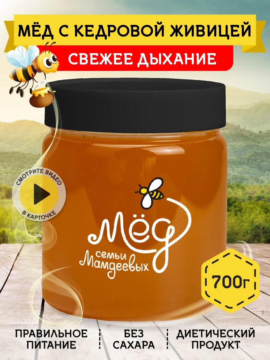 Мёд семьи Мамдеевых Мед с кедровой живицей, 700 г, пп, сладости