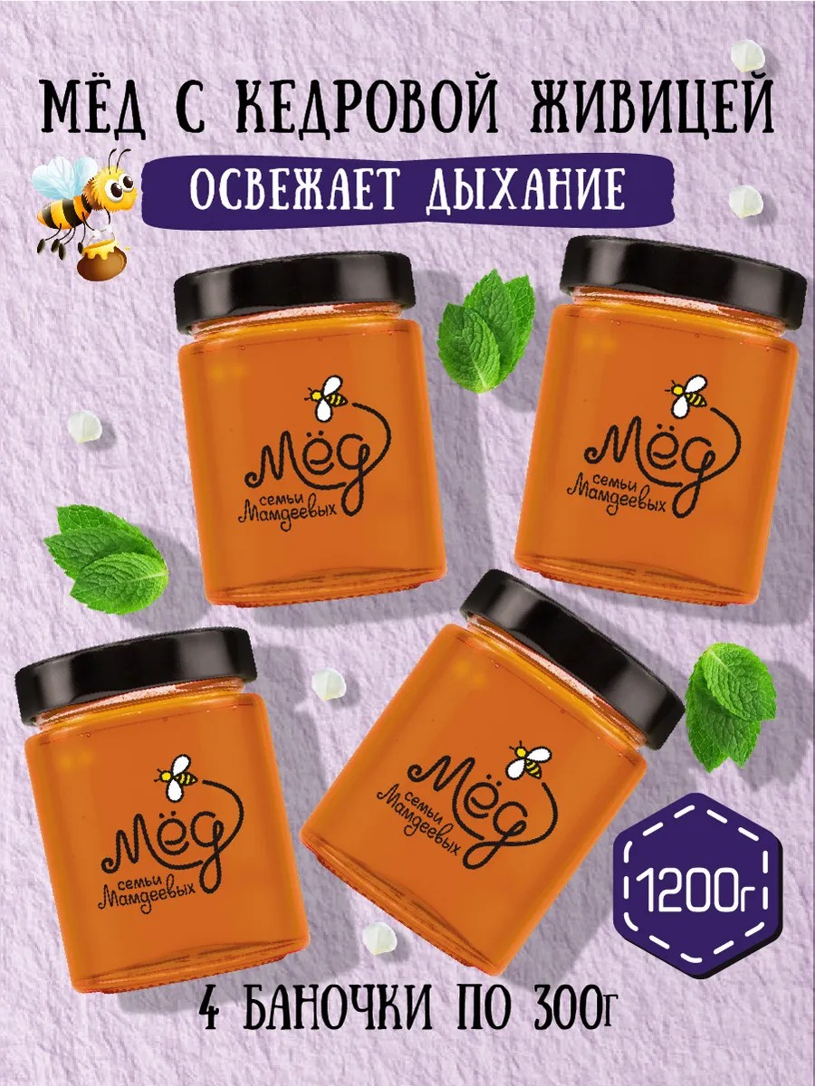 Мёд семьи Мамдеевых Мёд с кедровой живицей, подарочный набор, пп, зож