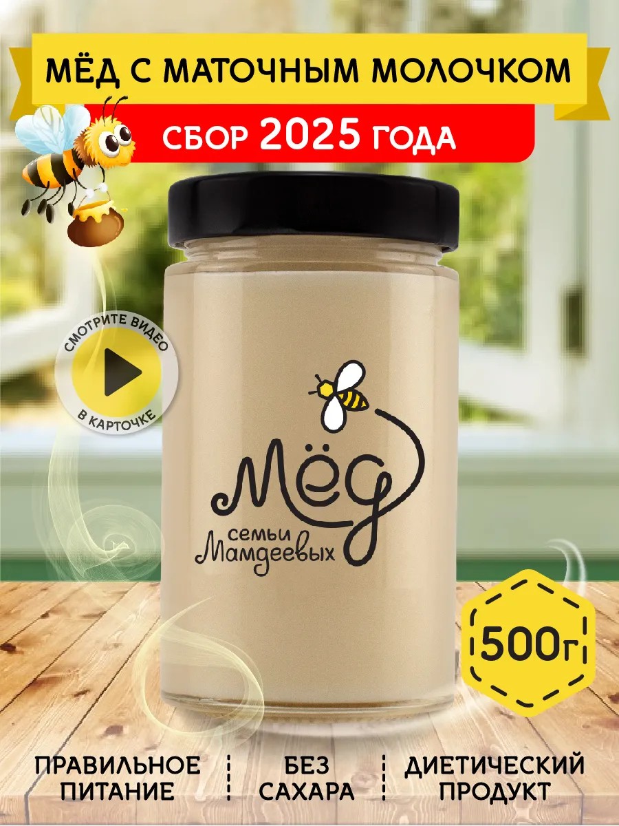 Мёд семьи Мамдеевых Мед с маточным молочком, 500 г, белый