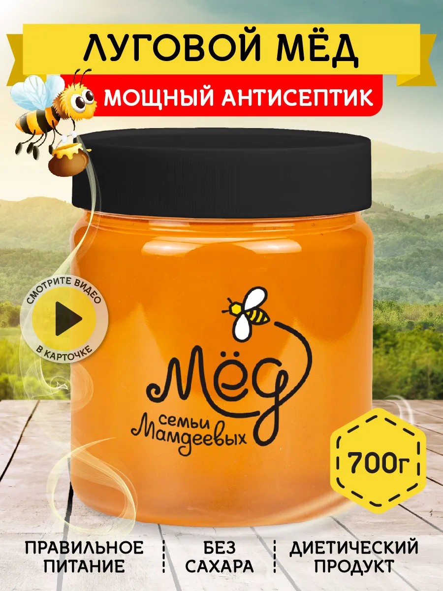 Мёд семьи Мамдеевых Луговой мед, 700 г, ЗОЖ, без сахара