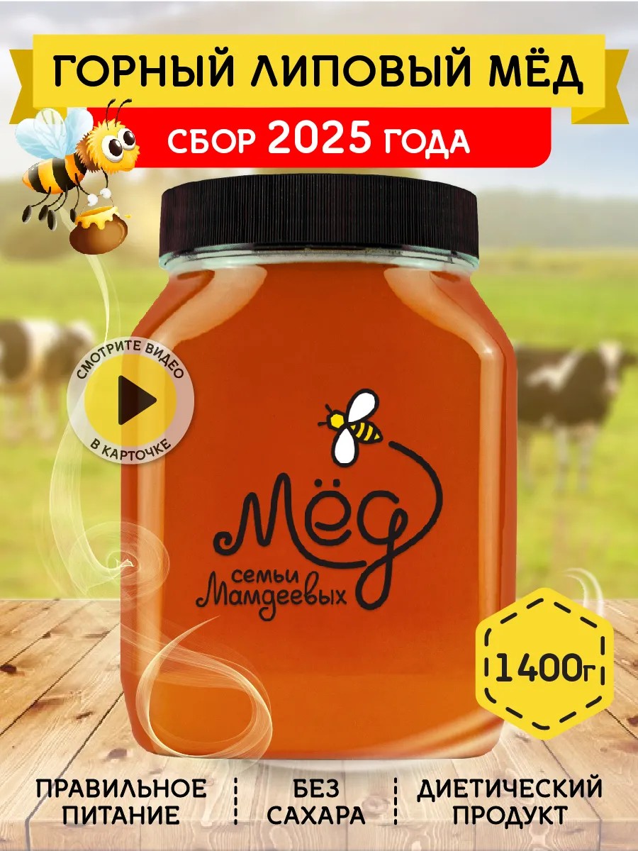 Мёд семьи Мамдеевых Горный липовый мед,1,4 кг, натуральный