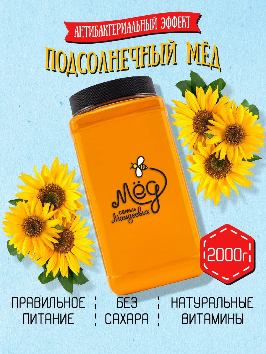 Мёд семьи Мамдеевых Подсолнечный мед, пп, зож, без гмо, без сахара