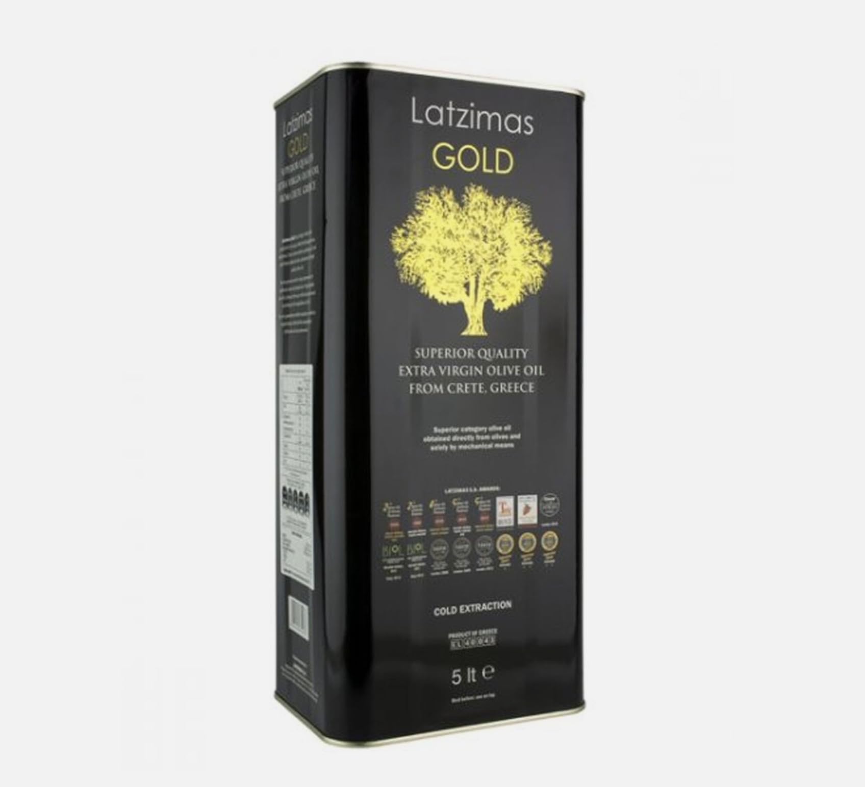 Discover the superior quality of Latzimas Gold Extra Virgin Olive Oil, sourced from the sun-drenched groves of Crete, Greece. This premium 5-liter tin contains cold-pressed olive oil that captures authentic Mediterranean flavor and richness. Perfect for cooking and general culinary use, this olive oil comes in a stylish black metal tin with elegant gold accents, ensuring both style and practicality in your kitchen. The cold-pressing process preserves the oil's natural properties and distinctive flavor profile. Each 15 ml serving delivers the pure essence of Greek olives, making it an excellent choice for cooking and finishing dishes. The convenient 5-liter size is ideal for households that appreciate quality olive oil and use it regularly. The oil is stable at room temperature and retains its characteristics when stored correctly. This versatile cooking oil comes in a sturdy metal tin, measuring 30 cm high and 10 cm wide, designed for easy storage and extended freshness. Discover the authentic taste of Cretan olive oil, perfect for enhancing your culinary creations. INGREDIENTS Olive Oil