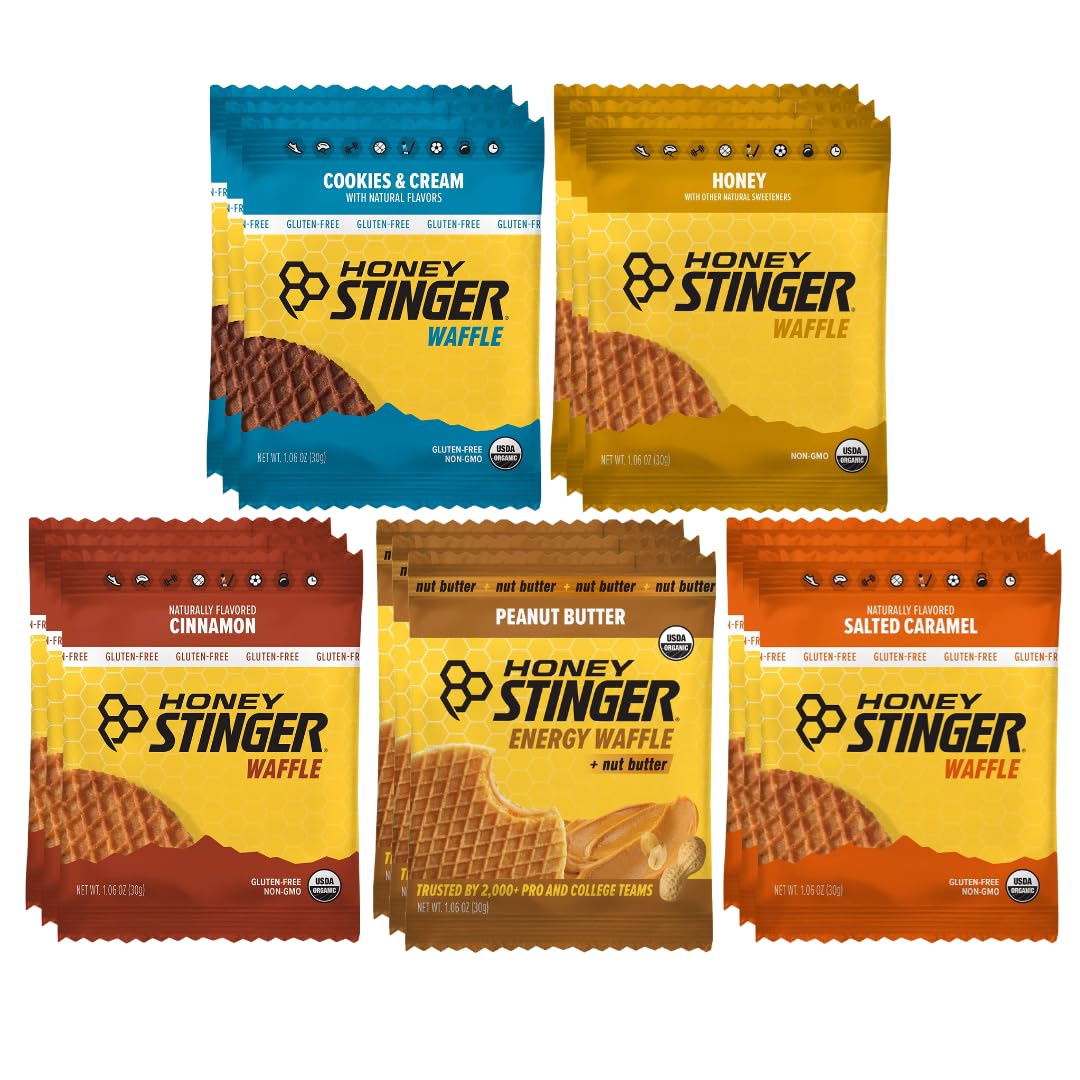 Fuel your day with the Honey Stinger Energy Waffle Variety Pack, featuring 15 individually wrapped waffles made with organic honey for naturally delicious energy. This assortment includes 3 each of Honey, Peanut Butter, Cinnamon, Salted Caramel, and Cookies Cream, giving you a perfect mix of classic and indulgent flavors. Designed for active lifestyles, Honey Stinger waffles provide fast-acting carbohydrates that help support energy levels during workouts, endurance sports, and outdoor adventures. Whether you're training for a race, heading out on a hike, or simply need a convenient snack during a busy day, these waffles deliver reliable fuel without artificial ingredients. Lightweight, portable, and easy to eat, they're ideal before, during, or after activity. From athletes and fitness enthusiasts to travelers and students, this variety pack ensures you always have a tasty, energizing option on hand.TRUSTED ENERGY BRAND – Honey Stinger is a well-known choice for endurance athletes and active lifestyles worldwide. CROWD-PLEG FLAVORS – A favorite among athletes, fitness enthusiasts, outdoor adventurers, students, and busy professionals. BALANCED CARBS FOR PERFORMANCE – Designed to help maintain energy levels before, during, or after physical activity without feeling heavy. ON-THE-GO CONVENIENCE – Individually wrapped waffles fit easily into backpacks, gym bags, lunch boxes, and pockets for fast energy anytime. GREAT FOR EVENTS ADVENTURES – Excellent snack choice for races, marathons, tournaments, outdoor trips, camping, and travel days. PERFECT FOR SPORTS FITNESS – Ideal fuel for running, cycling, hiking, gym workouts, endurance training, and athletic performance. NATURAL ENERGY FROM HONEY – Made with organic honey to provide quick, sustained energy without artificial sweeteners or synthetic ingredients. PERFECT FOR SPORTS FITNESS – Ideal fuel for running, cycling, hiking, gym workouts, endurance training, and athletic performance. VARIETY PACK VALUE – Includes 15 individually wrapped Honey Stinger Energy Waffles with 3 of each flavor: Honey, Peanut Butter, Cinnamon, Salted Caramel, and Cookies Cream for delicious variety.