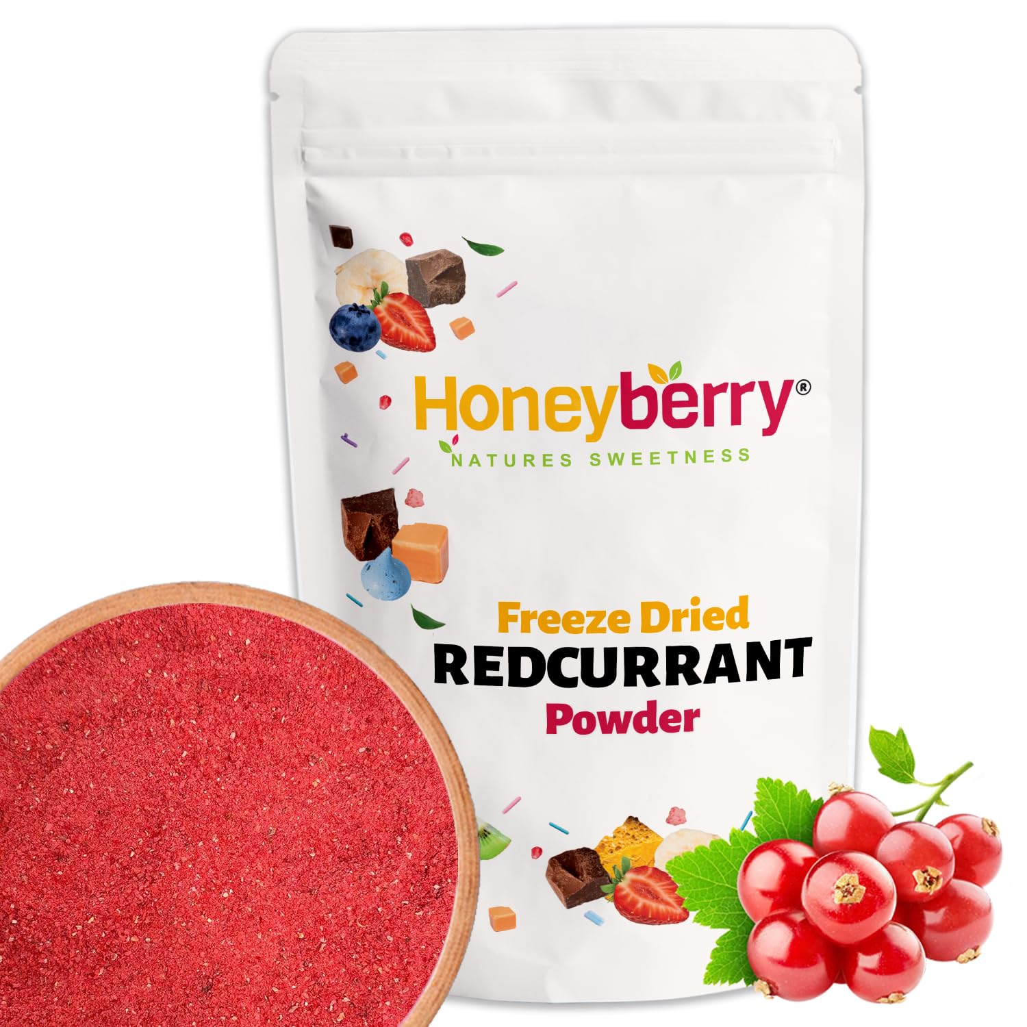 Honeyberry Solutions LTD Freeze Dried Red Currant Powder 100g Freeze Dried Fruit Powder Dried Red Currant Powder for Baking Smoothies and Desserts Natural Berry Powder Without Additives or Sugars