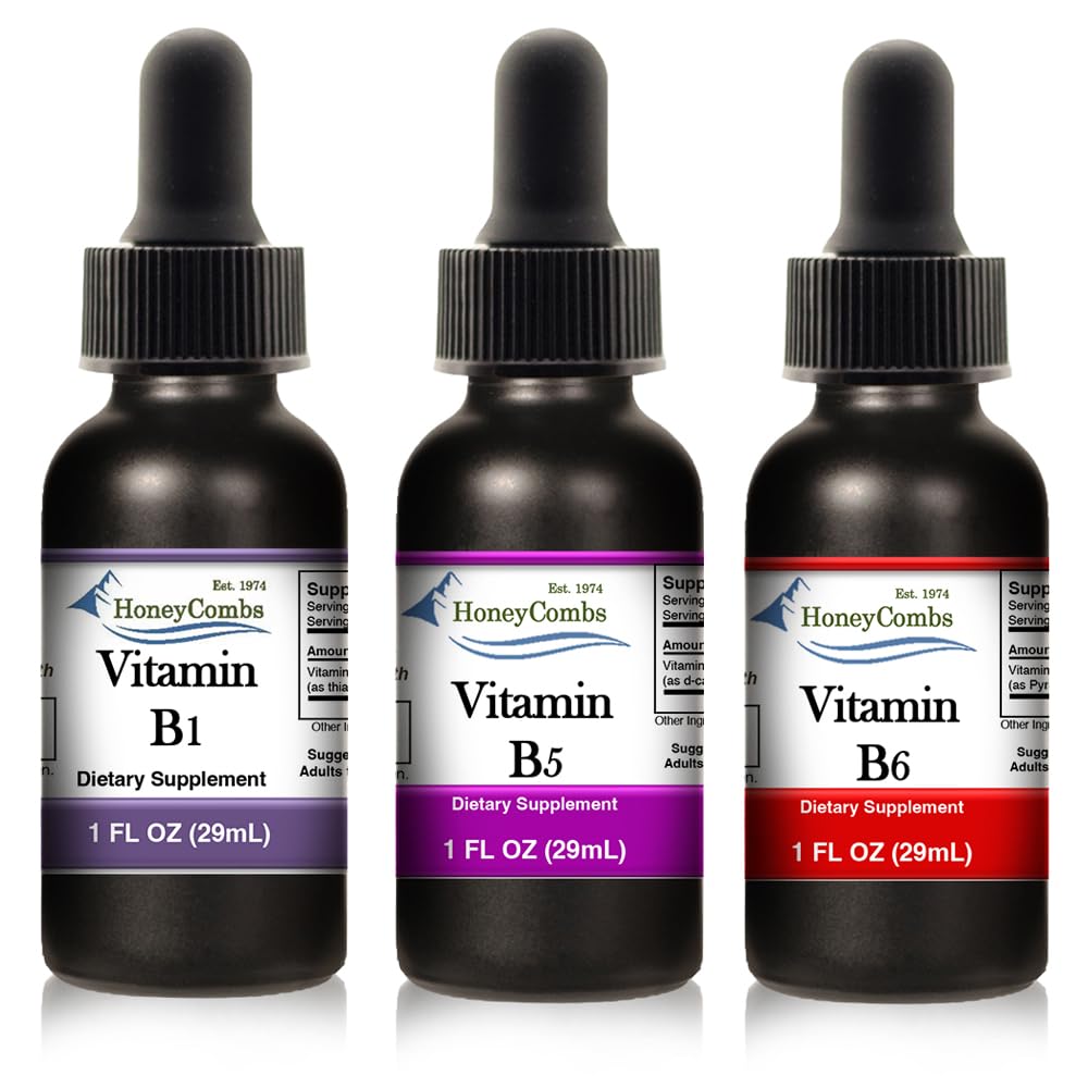HoneyCombs Liquid Drops 1oz Each Save 10% - High Potency Thiamine Vitamin B1 Extract + Vitamin B5 (Pantothenic Acid) + Vitamin B6 (Pyridoxine)