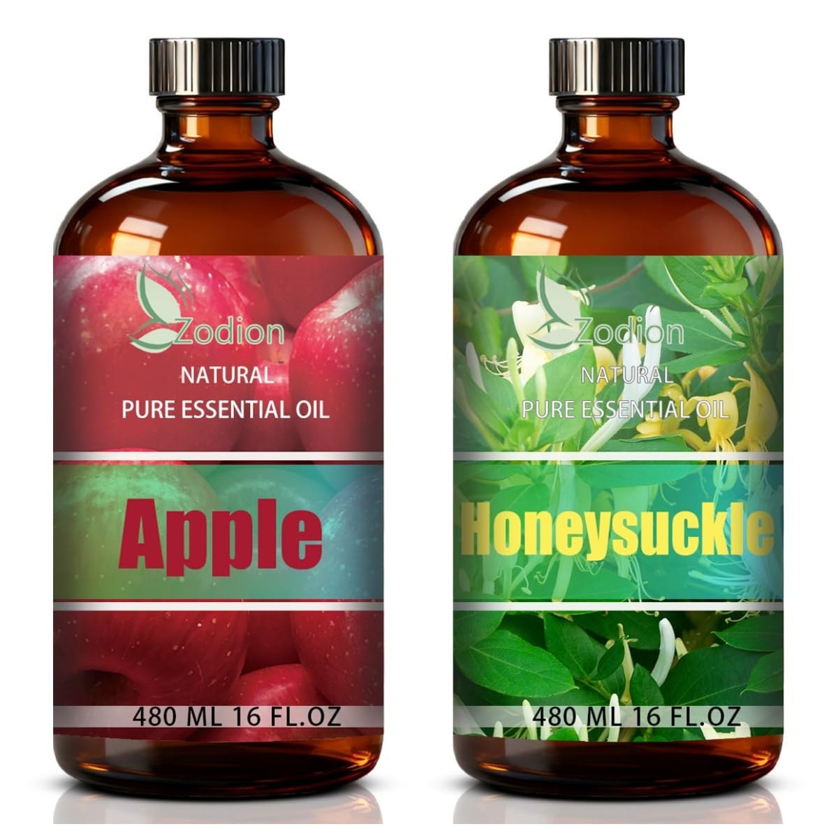 Honeysuckle Essential Oil and Apple Fresh Essential Oil 16 Fl Oz - Honeysuckle & Apple Fresh Oil for Diffuser Aromatherapy Home Fragrance Skin & Hair Care DIY Candle & Soap Making Yoga