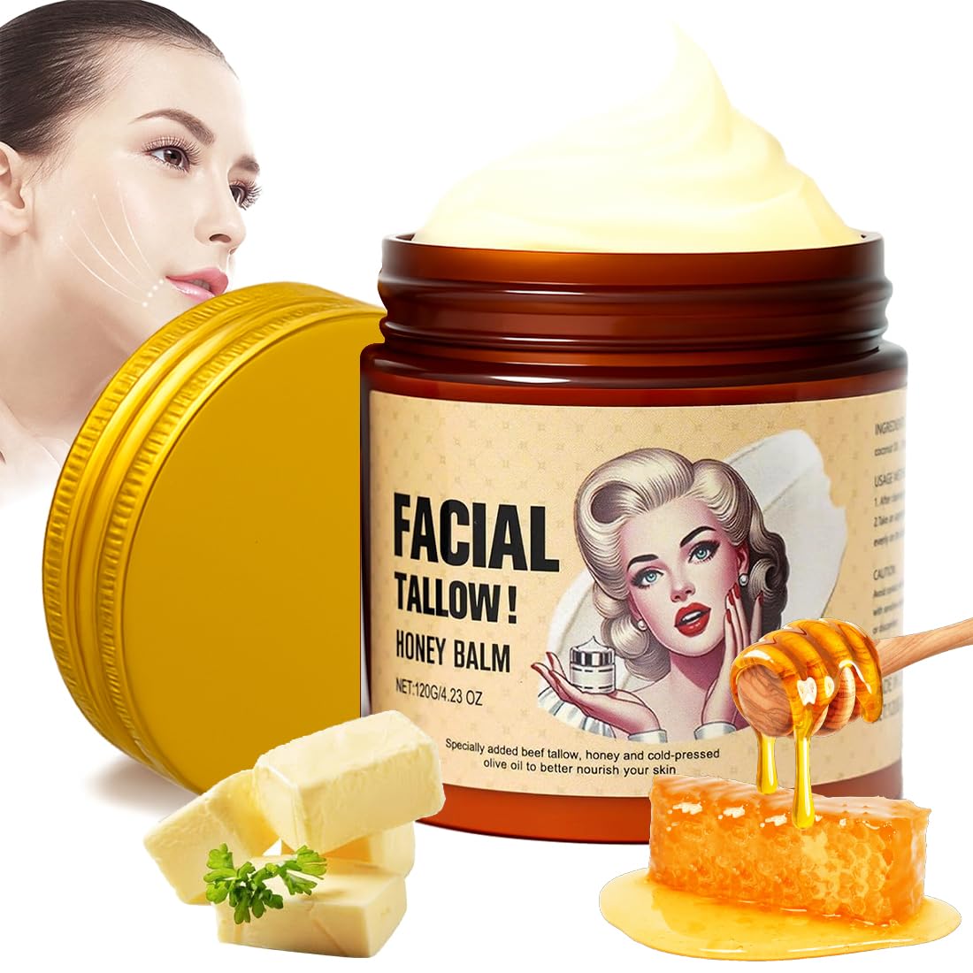Tallow Honey Skin Cream, Tallow Honey Skin Cream, Organic Beef Tallow Cream, Beef Tallow Cream, Honey Balm, Face and Body Skin Care, Whipped Moisturizing Cream INGREDIENTS Tallow Honey Skin Cream is enriched with beef tallow, honey, and cold-pressed organic olive oil. SAFETY WARNING No See moreMultifunctional: Beef tallow honey balm nourishes the skin with essential lipids to keep it soft. Powerful antioxidants help protect the skin from oxidative damage. It deeply nourishes the skin and improves its barrier function to minimize skin loss. Gentle skincare: Beef tallow honey balm has a gentle formula specially designed for sensitive skin. It cares for every inch of skin, effectively relieving discomfort caused by sensitivity and ensuring a pleasant and enjoyable skincare experience. The selected ingredients strengthen the skin barrier and make your daily skincare routine an elegant experience. Quality ingredients: Beef tallow honey balm is enriched with beef tallow, honey, and organic cold-pressed olive oil. This beef tallow honey skin cream can be used as a facial moisturizer, body lotion, or lip balm to fully nourish the skin. Easy to use: After cleansing and drying your face, apply an appropriate amount of the Beef Honey Balm Cream to your face. Gently massage with your fingertips in circular motions until fully absorbed. Simple and easy steps, so you can enjoy skincare in your busy life.Talg bio pour soins de la peau, sébum de bœuf, crème de sébum, suif de bœuf, crème de suif de bœuf, crème de suif de bœuf, baume de bœuf, soin de la peau pour le visage et le corps, crème fouettée Tallow au bœuf bio 120 g (1er Pack)DESCRIPTION DU PRODUIT DESCRIPTION DU PRODUIT Talg bio pour soins de la peau, soin de la peau de bœuf, crème de sébum, suif de bœuf bio, crème de suif de bœuf, baume au miel, soin de la peau pour le visage et le corps, crème fouettée hydratante INGRÉDIENTS La crème pour la peau de bœuf Tallow Honey est enrichie en suif de bœuf, de miel et d'huile d'olive bio pressée à froid AVERTISSEMENT DE SÉCURITÉ Non Voir plusMultifonction : le baume au miel de suif de bœuf nourrit la peau avec des lipides essentiels pour la garder douce. Des antioxydants puissants aident à protéger la peau contre les dommages oxydatifs. Nourrit la peau en profondeur et améliore sa fonction de barrière pour minimiser les pertes cutanées. Soin doux de la peau : le baume au miel de bœuf dispose d'une formule douce spécialement conçue pour les peaux sensibles. Il prend soin de chaque centimètre de la peau, soulage efficacement l'inconfort causé par la sensibilité et assure un plaisir de soins de la peau agréable et agréable. Les ingrédients sélectionnés renforcent la barrière cutanée et font de vos étapes de soin quotidiennes une expérience de soin élégante. Ingrédients de qualité : le baume au miel de suif de bœuf est enrichi en suif de bœuf, de miel et d'huile d'olive bio pressée à froid. Cette crème pour la peau au miel de bœuf peut être utilisée comme crème hydratante pour le visage, lotion pour le corps ou comme baume à lèvres pour nourrir complètement la peau. Facile à utiliser : après avoir nettoyé et séché la peau du visage, appliquez une quantité appropriée de crème de baume au miel de bœuf sur la peau du visage. Massez doucement du bout des doigts en mouvements circulaires pour qu'il pénètre complètement. Étapes simples et faciles à utiliser, de sorte que vous pouvez profiter des soins de la peau dans votre vie bien remplie.