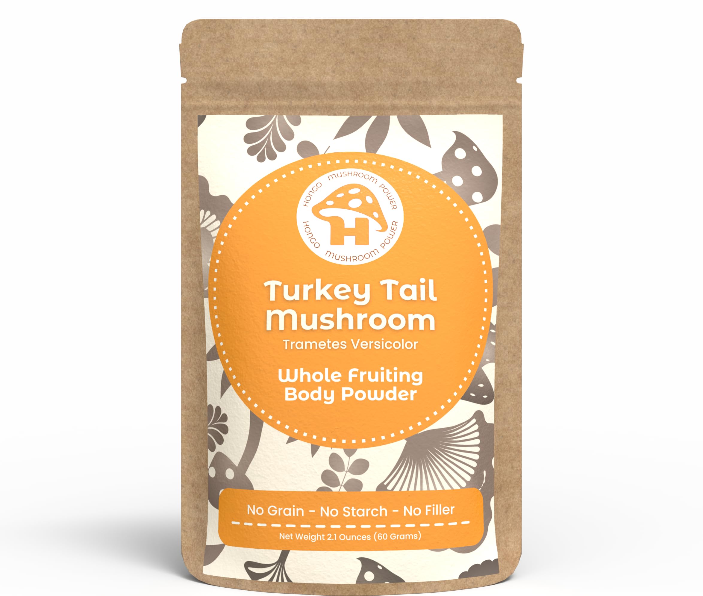 Hongo Mushroom Power - Turkey Tail Mushroom Powder - Pure Fruiting Body No Grains No FIllers 60g Pouch