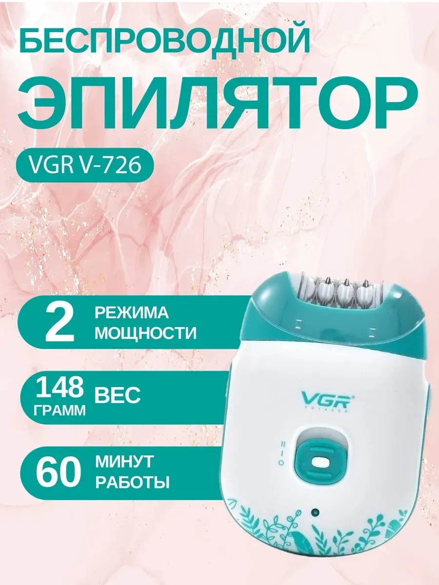 Эпилятор VGR V-726 сделает кожу ваших ног идеально гладкой надолго. Он бережно удаляет с корнем даже самые короткие волоски.Прибор оснащен эргономичной ручкой и головкой, которую можно промывать водой. Головка снимается с помощью нажатия двух боковых кнопок. И закрывается защитной крышечкой.Эпилятор работает от Lithium батареи 500 mAh и подзаряжается с помощью провода(есть в комплекте).Устройство работает в двух режимах, а система 18 пинцетов, сделает вашу кожу гладкой на несколько недель.Технические характеристики:· Система 18 пинцетов для быстрой и безопасной эпиляции;· 2 скоростных режима;· Время работы: 60 минут;· Время зарядки: 2 часа;· Lithium батарея, емкостью 500 mAh;· Мощность: 5 Вт;· Вес: 126 г.· Размеры: 100*70*30 ммКомплектация:1. Эпилятор.2. Кабель для зарядки.3. Щеточка.4. Защитная колпачок.5. Инструкция.6. Коробка