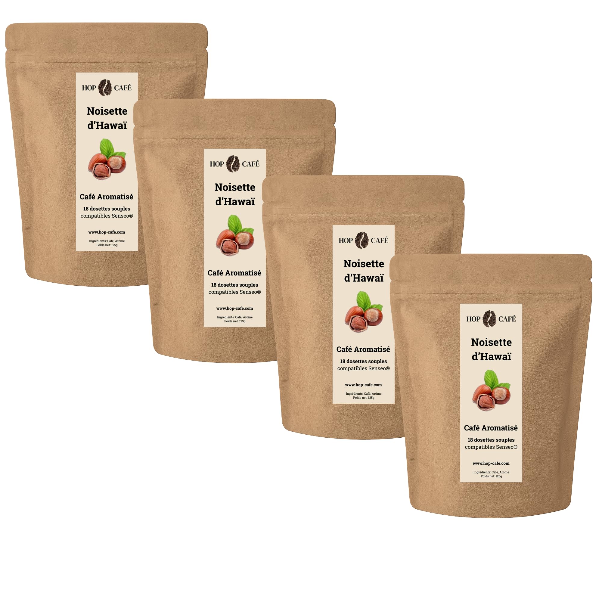 HOP CAFÉ – 72 Dosettes Souples Arôme Noisette – Café 100 Arabica – Lot 4x18 Noisette 18 unité (Lot de 4)