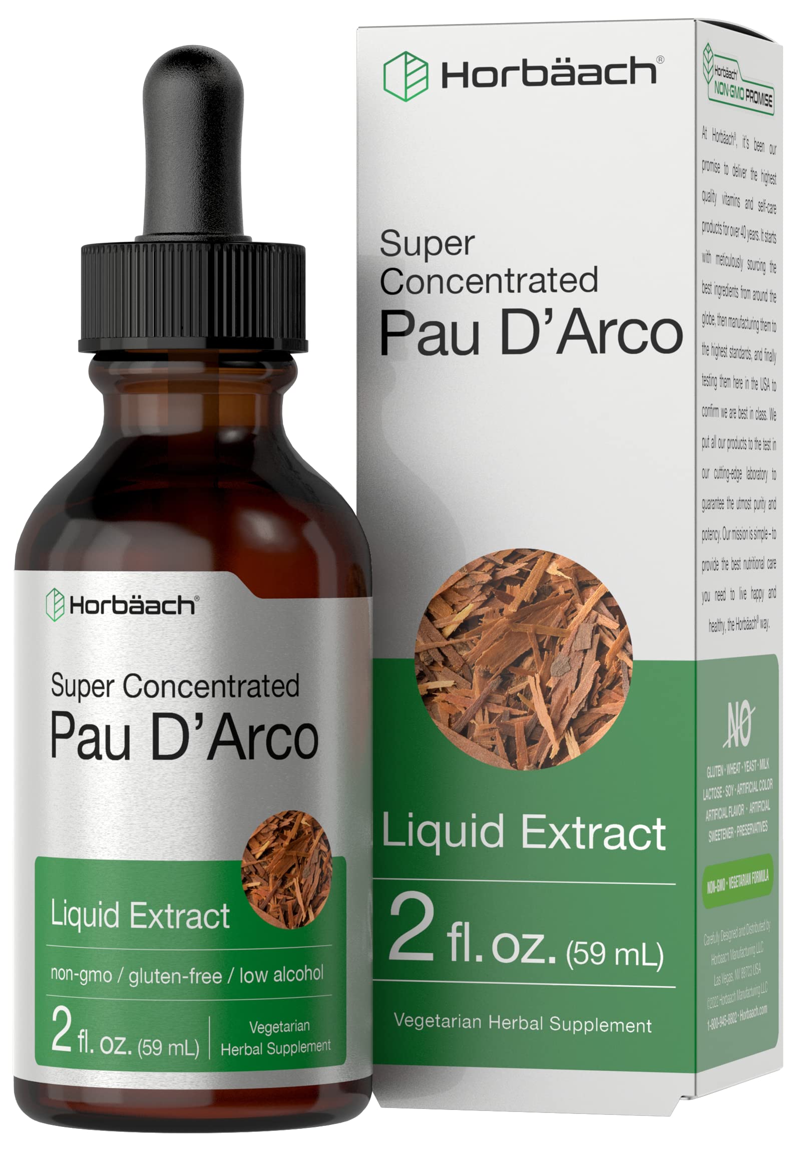 VEGETARIAN FORMULA: Naturally free of Gluten, Wheat, Artificial Flavor, Preservatives & Non-GMO. HORBAACH MANUFACTURERS: Laboratory Tested, Trusted Ingredients, Superior Quality, 100% Guaranteed!. EXPERTLY CRAFTED: Our premium formula is backed by our commitment to purity and potency. SUPER CONCENTRATED: Delivers a powerful source of Pau D'Arco in one low-alcohol liquid extract. PAU D'ARCO: From the bark extract of the tabebuia avellanedae plant, this herb has been used for centuries.
