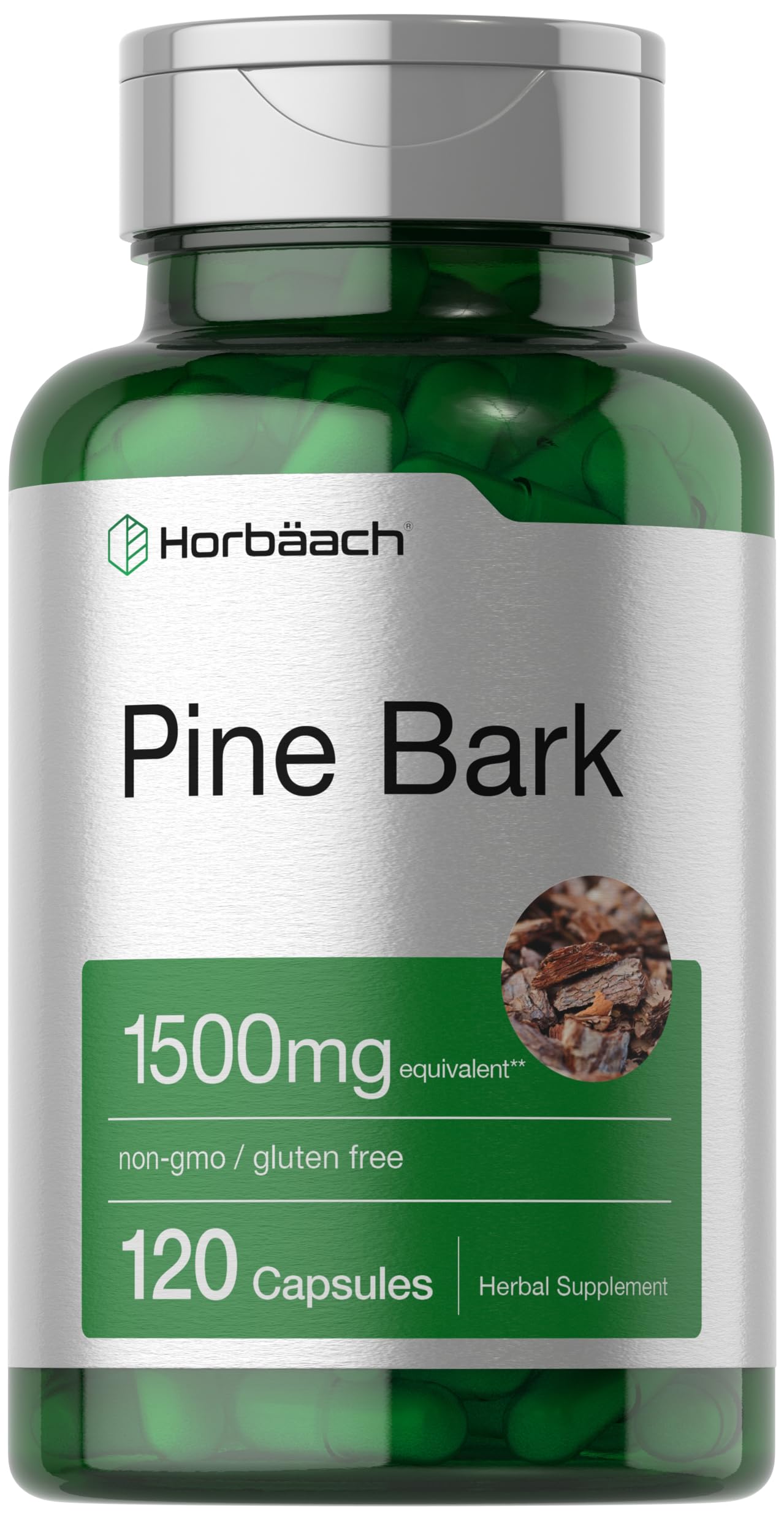 NATURALLY FREE OF: Gluten, Wheat, Milk, Lactose, Artificial Flavor, Sweetener & Non-GMO. HORBAACH MANUFACTURERS: Laboratory Tested, Trusted Ingredients, Superior Quality, 100% Guaranteed!. EXPERTLY CRAFTED: Our professional formula is backed by our commitment to purity and potency. PINE BARK: The equivalent of 1,500 mg of Pine Bark in each quick release capsule**. STANDARDIZED FORMULA: Pine Bark standardized to contain 95 mg Proanthocyanidins per capsule.