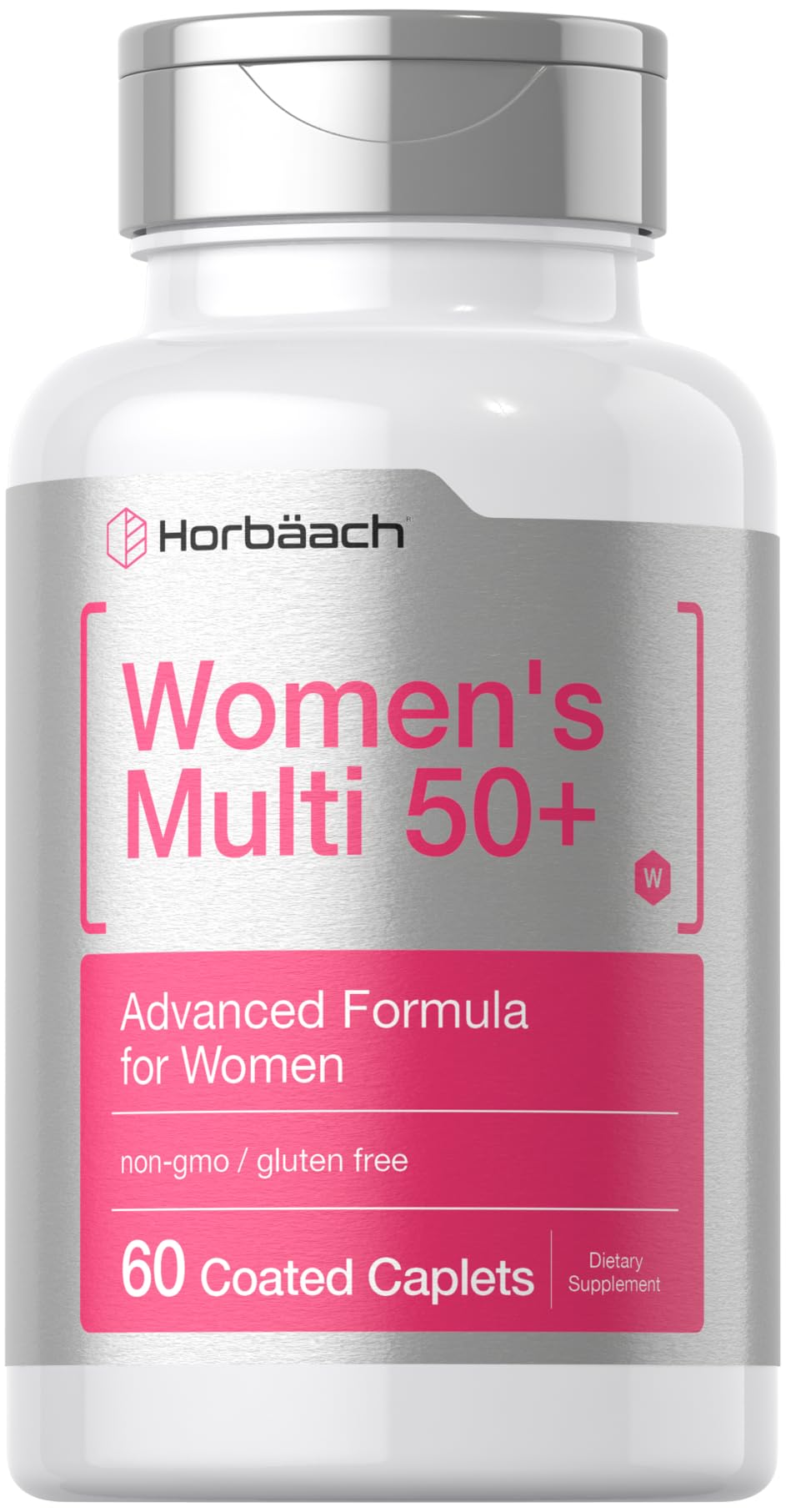 Nutritional Support for Women Over 50: At Horbaach, we are passionate about empowering women through quality nutrition. Though, getting all your daily nutrients from diet alone is no easy task. That's why we designed the ultimate multivitamin supplement specifically for women 50 plus, to help support a well-balanced regimen. Multivitamin Supplement: A specialized Multi for Women 50+ can help provide all the key nutrients women need to help fuel an active routine. Multivitamins can be found in a variety of different forms such as chewable tablets, gummies, softgels, liquid drops, bulk powder, capsules and more! Horbaach Multi for Women 50+: Horbaach's Multi for Women 50+ provides beneficial nutrients including Vitamins A, B, C, D, E, Calcium, Magnesium, Zinc, Folate, Potassium, Biotin and more! It features a Beauty Complex with Collagen, plus a unique blend of ingredients that offer strong support for Women over 50. Coated caplets are gluten-free and non-GMO, making it an easy addition to any routine.NATURALLY FREE OF: Gluten, Wheat, Yeast, Milk, Lactose, Artificial Flavor, Sweetener & Non-GMO. HORBAACH MANUFACTURERS: Laboratory Tested, Trusted Ingredients, Superior Quality, 100% Guaranteed!. EXPERTLY CRAFTED: Our professional formula is backed by our commitment to purity and potency. ADVANCED FORMULA: Complete with essential vitamins, nutrients, minerals and more!. MULTI for WOMEN 50+: A multivitamin specific to support the daily nutritional needs of women 50+.