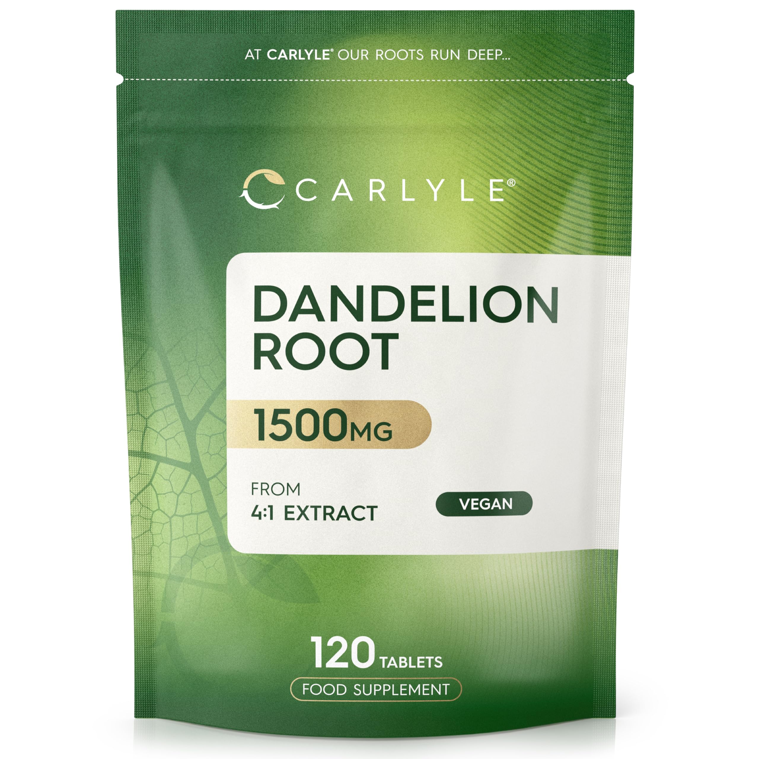 Dandelion root supplement: Dandelion, also known as Taraxacum officinale, is common in the temperate climates of the Northern Hemisphere. The leaves, roots and flowers can not only add color to your plate, but are also often made into teas and nutritional supplements. Because not everyone likes dandelion tea and seeds, there are a variety of supplements available, including drops, tablets, powders and capsules. Carlyle Dandelion Root: At Carlyle, our dandelion root supplement is an exceptional form of this nutrient. Derived from the finest source of Taraxacum officinale, our formula contains the equivalent of 1500 mg of dandelion root in one powerful extract. Take 2 tablets of 750 mg daily with some water to supplement your diet. We strive for fair food. That's why our vegan recipes contain no artificial colours, flavors or preservatives. Because you deserve the best for your healthy lifestyle! INGREDIENTS Bulking agents (Dicalcium phosphate, Microcrystalline cellulose), Dandelion root extract 4:1 (Taraxacum sect. Taraxacum F.H.Wigg.), Anti-caking agents (Magnesium salts of fatty acids, Silicon dioxide), Tablet coating (Glazing agents: Polydextrose, Hydroxypropyl methylcellulose, Guar gum Colour: Calcium carbonate). INSTRUCTIONS FOR USE Take 2 tablets per day with a meal. SAFETY WARNING Food supplements should not be used as a substitute for a varied and balanced diet and a healthy lifestyle. If you are pregnant, nursing, taking medication, or have a medical condition, consult your physician or healthcare provider before use. If any side effect occurs, stop using this product immediately and consult your doctor. It is not intended for use by persons under the age of 18. LEGAL DISCLAIMER We make every effort to ensure that the information on this page is accurate at the time of last edit. Because we continually review and develop our products to meet the needs of our consumers, consumers, especially those suffering from allergies and intolerances, should always check the labeling, warnings and instructions on the product supplied before use or consumption. See moreCARLYLE MANUFACTURER - For over 40 years in the healthcare products sector, we have been providing high quality nutritional supplements, produced to strict quality control standards in accordance with GMP and BRC guidelines. ROOTED IN WELLBEING: Carlyle Dandelion tablets are vegan and free from artificial colors, flavors or preservatives. It is the perfect formula for adult men and women. EASY AND CONVENIENT: We have packed our dandelion tablets in letterbox-friendly, resealable and light-tight bags, so you can easily take them with you!. NATURAL PRODUCT: Dandelion, also known as Taraxacum officinale, is found in all mild climates of the Northern Hemisphere. WHY CARLYLE DANDELION TABLETS? Our highly effective formula contains 1500 mg of dandelion root per daily serving.Paardenboem Poeder Tabletten 1500mg 120 Dandelion Root Extract Tablets Paardenbloemwortel Extract Veganistische Carlyle Supplement met paardenbloemwortel: Paardenbloem, ook bekend als Taraxacum officinale, komt veel voor in de gematigde klimaten van het noordelijk halfrond. De bladeren, wortels en bloemen kunnen niet alleen kleur toevoegen aan uw bord, maar worden ook vaak verwerkt in thee en voedingssupplementen. Omdat niet iedereen van paardenbloemthee en -zaden houdt, zijn er verschillende supplementen verkrijgbaar, waaronder druppels, tabletten, poeders en capsules. Carlyle Paardenbloemwortel: Bij Carlyle is ons paardenbloemwortelsupplement een uitzonderlijke vorm van deze voedingsstof. Onze formule is afgeleid van de beste bron van Taraxacum officinale en bevat het equivalent van 1500 mg paardenbloemwortel in één krachtig extract. Neem dagelijks 2 tabletten van 750 mg met wat water als aanvulling op uw dieet. Wij streven naar eerlijke voeding. Daarom bevatten onze veganistische recepten geen kunstmatige kleurstoffen, smaakstoffen of conserveermiddelen. Want jij verdient het beste voor jouw gezonde levensstijl! INGREDIËNTEN Vulstoffen (Dicalciumfosfaat, Microkristallijne cellulose), Paardenbloem wortel extract 4:1 (Taraxacum sect. Taraxacum F.H.Wigg.), Antiklontermiddelen (Magnesiumzouten van vetzuren, Siliciumdioxide), Tablet-coating (Glansmiddelen: Polydextrose, Hydroxypropylmethylcellulose, Guarpitmeel Kleurstof: Calciumcarbonaat). GEBRUIKSAANWIJZING Neem 2 tabletten per dag bij een maaltijd. VEILIGHEIDSWAARSCHUWING Voedingssupplementen mogen niet worden gebruikt als vervanging voor een gevarieerde en evenwichtige voeding en een gezonde levensstijl. Als u zwanger bent, borstvoeding geeft, medicijnen gebruikt of een medische aandoening heeft, raadpleeg dan vóór gebruik uw arts of zorgverlener. Als er een bijwerking optreedt, stop dan onmiddellijk met het gebruik van dit product en raadpleeg uw arts. Het is niet bedoeld voor gebruik door personen jonger dan 18 jaar. WETTELIJKE DISCLAIMER Wij doen ons uiterste best om ervoor te zorgen dat de informatie op deze pagina accuraat is op het moment van de laatste bewerking. Omdat we onze producten voortdurend herzien en ontwikkelen om aan de behoeften van onze consumenten te voldoen, moeten consumenten, vooral degenen die lijden aan allergieën en intoleranties, altijd de etikettering, waarschuwingen en instructies op het geleverde product controleren vóór gebruik of consumptie. Meer bekijkenCARLYLE FABRIKANT - Al meer dan 40 jaar leveren wij in de sector van gezondheidsproducten hoogwaardige voedingssupplementen, geproduceerd volgens strenge kwaliteitscontrolenormen in overeenstemming met de GMP- en BRC-richtlijnen. GEWORTELD IN WELZIJN: Carlyle Dandelion tabletten zijn veganistisch en vrij van kunstmatige kleurstoffen, smaakstoffen of conserveermiddelen. Het is de perfecte formule voor volwassen mannen en vrouwen. GEMAKKELIJK EN HANDIG: Wij hebben onze paardenbloemtabletten verpakt in brievenbusvriendelijke, hersluitbare en lichtdichte zakjes, zodat u ze gemakkelijk mee kunt nemen!. NATUURLIJK PRODUCT: Paar