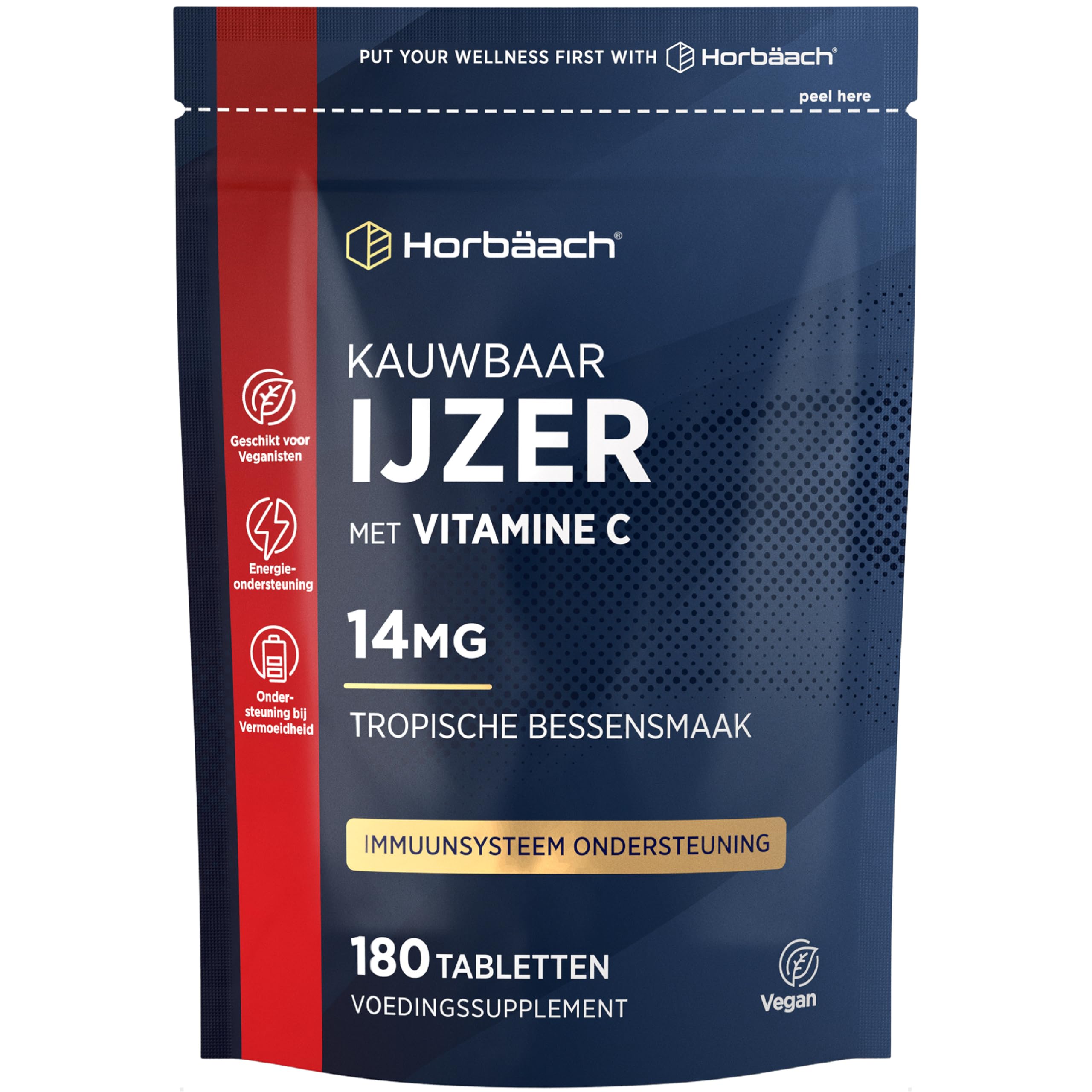 Why take iron supplements? Iron is an essential mineral that plays a crucial role in many bodily functions. Although it is an essential nutrient, many people do not get enough iron in their daily diet. Iron supplements are ideal for anyone who wants to maintain optimal iron levels to support overall health and well-being. Growing awareness of the important benefits of iron for both men and women has significantly increased the demand for iron supplements. Available in different forms – liquid drops, sprays, tablets, chewables, gummies, capsules, sachets and powders – there is an iron supplement for everyone's needs. Horbaach Iron Vitamin C Chewable Tablets: Strengthen your daily diet with Horbaach. This innovative formula delivers 14 mg of high-quality iron and 80 mg of vitamin C in a super convenient and delicious chewable tablet. Simply take two (2) tablets in the morning or evening to reap the benefits of this essential mineral supplement. There is no better formula! INGREDIENTS Dextrose, Sweeteners (Mannitol, Sucralose), Bulking Agent (Microcrystalline Cellulose), Vitamin C (Sodium L-ascorbate), Natural Flavouring, Iron(II) Fumarate, Anti-caking Agents (Fatty Acids, Silicon Dioxide, Magnesium Salts of Fatty Acids). INSTRUCTIONS FOR USE Take 2 chewable tablets per day with a meal. SAFETY WARNING Food supplements should not be used as a substitute for a varied and balanced diet and a healthy lifestyle. If you are pregnant, nursing, taking medication, or have a medical condition, consult your physician or healthcare provider before use. If any side effect occurs, stop using this product immediately and consult your doctor. It is not intended for use by persons under the age of 18. See morePACKAGING MAY VARY: We are in the process of updating our packaging. If the product you receive looks different, you can be assured that the benefits remain the same. Additionally, if your product is labeled in English, you will find a removable label with six additional languages for your convenience. SUITABLE FOR: Horbaach iron chewable tablets for adults are vegan and vegetarian and free from artificial colours, flavors and preservatives. The perfect formula for mature women – with the best price-quality ratio. DELICIOUS PRACTICAL: Invincibly delicious and easy to incorporate this essential mineral into your daily routine. ESSENTIAL: Iron is a vital mineral that plays a crucial role in many bodily functions. HIGH STRENGTH ADULT CUT TABLETS: Boost your health with our powerful formula! Each daily serving provides 14 mg of high-quality iron and 80 mg of vitamin C.IJzer en Vitamine C 180 Kauwtabletten Iron 14mg and Vitamin C 80mg Supplement 2 Maanden Levering Horbaach Waarom ijzersupplementen innemen? IJzer is een essentieel mineraal dat een cruciale rol speelt bij veel lichaamsfuncties. Hoewel het een onmisbare voedingsstof is, krijgen veel mensen via hun dagelijkse voeding niet genoeg ijzer binnen. IJzersupplementen zijn ideaal voor iedereen die optimale ijzerwaarden wil behouden om de algehele gezondheid en het welzijn te ondersteunen. Het groeiende bewustzijn van de belangrijke voordelen van ijzer voor zowel mannen als vrouwen heeft de vraag naar ijzersupplementen aanzienlijk vergroot. Verkrijgbaar in verschillende vormen – vloeibare druppels, sprays, tabletten, kauwtabletten, gummies, capsules, sachets en poeders – er is een ijzersupplement voor ieders behoefte. Horbaach IJzer Vitamine C kauwtabletten: Versterk je dagelijkse voeding met Horbaach. Deze innovatieve formule levert 14 mg hoogwaardig ijzer en 80 mg vitamine C in een super handige en heerlijke kauwtablet. Neem eenvoudig twee (2) tabletten in de ochtend of avond om te profiteren van de voordelen van dit essentiële mineraalsupplement. Er bestaat geen betere formule! INGREDIËNTEN Dextrose, Zoetstoffen (Mannitol, Sucralose), Vulstof (Microkristallijne cellulose), Vitamine C (Natrium-L-ascorbaat), Natuurlijk aroma, Ijzer(II)fumaraat, Antiklontermiddelen (Vetzuren, Siliciumdioxide, Magnesiumzouten van vetzuren). GEBRUIKSAANWIJZING Neem 2 kauwtabletten per dag bij een maaltijd. VEILIGHEIDSWAARSCHUWING Voedingssupplementen mogen niet worden gebruikt als vervanging voor een gevarieerde en evenwichtige voeding en een gezonde levensstijl. Als u zwanger bent, borstvoeding geeft, medicijnen gebruikt of een medische aandoening heeft, raadpleeg dan vóór gebruik uw arts of zorgverlener. Als er een bijwerking optreedt, stop dan onmiddellijk met het gebruik van dit product en raadpleeg uw arts. Het is niet bedoeld voor gebruik door personen jonger dan 18 jaar. Meer bekijkenVERPAKKING KAN VARIËREN: We zijn bezig met het updaten van onze verpakking. Als het product dat u ontvangt er anders uitziet, kunt u er zeker van zijn dat de voordelen hetzelfde blijven. Als uw product in het Engels is geëtiketteerd, vindt u bovendien voor uw gemak een verwijderbaar etiket met zes andere talen. GESCHIKT VOOR: Horbaach ijzerkauwtabletten voor volwassenen zijn veganistisch en vegetarisch en vrij van kunstmatige kleur-, smaak- en conserveringsstoffen. De perfecte formule voor volwassen vrouwen – met de beste prijs-kwaliteitverhouding. LEKKER PRAKTISCH: Onoverwinnelijk lekker en gemakkelijk om dit essentiële mineraal in je dagelijkse routine op te nemen. ESSENTIEEL: IJzer is een vitaal mineraal dat een cruciale rol speelt bij veel lichaamsfuncties. KAUTABLETTEN VOOR VOLWASSENEN MET HOGE STERKTE: Versterk je gezondheid met onze krachtige formule! Elke dagelijkse portie levert 14 mg hoogwaardig ijzer en 80 mg vitamine C.
