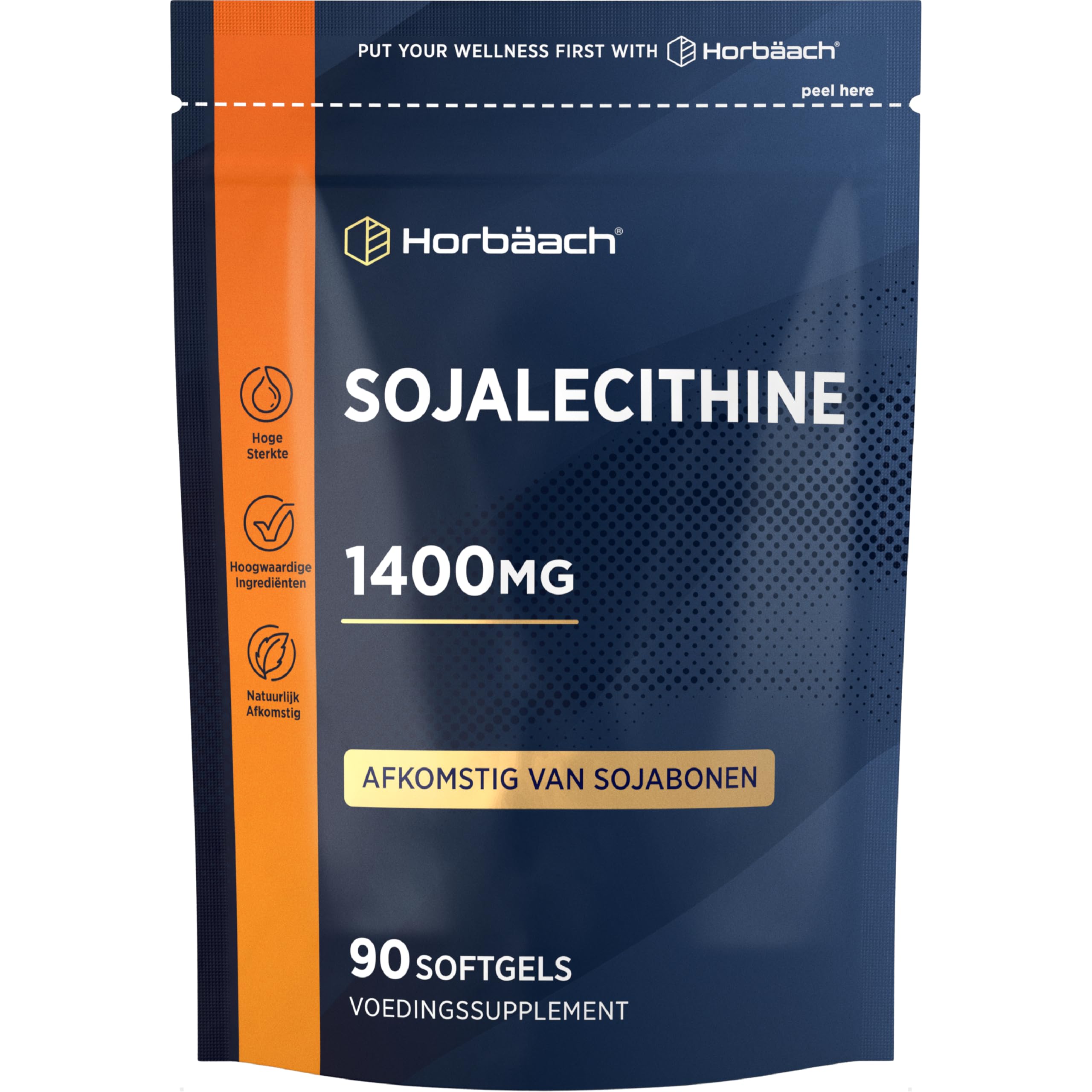 Soy lecithin is widely available in both conventional and health food stores. Lecithin is an additive that can be obtained from various plant and animal tissues such as green vegetables, red meat and eggs. It is often used as an emulsifier in cooking. Lecithin is available as a dietary supplement in various forms such as powder, capsules and liquid. It can help promote health and treat certain diseases. It is an important natural source of essential fatty acids, which are important for the proper functioning of the body. Horbaach Lecithin is the highest form of lecithin on the market. Simply take two softgels per day and reap the benefits of this natural supplement for over 4 months! INGREDIENTS Soy Lecithin, Capsule (Gelatine), Humectants (Glycerol, Sorbitols), MCT (Medium Chain Triglycerides). INSTRUCTIONS FOR USE Take 2 softgels per day with a meal. SAFETY WARNING Food supplements should not be used as a substitute for a varied and balanced diet and a healthy lifestyle. If you are pregnant, nursing, taking medication, or have a medical condition, consult your physician or healthcare provider before use. If any side effect occurs, stop using this product immediately and consult your doctor. It is not intended for use by persons under the age of 18. See morePACKAGING MAY VARY: We are in the process of updating our packaging. If the product you receive looks different, you can be assured that the benefits remain the same. Additionally, if your product is labeled in English, you will find a removable label with six additional languages for your convenience. SUITABLE FOR: Horbaach Soy Lecithin Softgels contain no artificial colors or preservatives and are for men and women. SIMPLE CONVENIENT: No need to reorder every month. Simply take two tablets a day and reap the benefits of this natural supplement!. SOY LECITHIN: Acts as an emulsifier and can help maintain proper bladder function and urine flow. HIGH STRENGTH: Provides 1400 mg of lecithin per daily serving!.Lecithine 1400mg van Soja 90 liquid capsules Hoge Dosering Sojalecithinesupplement Soy Lecithin Horbaach Sojalecithine is overal verkrijgbaar in zowel conventionele als natuurvoedingswinkels. Lecithine is een additief dat kan worden verkregen uit verschillende plantaardige en dierlijke weefsels zoals groene groenten, rood vlees en eieren. Het wordt vaak gebruikt als emulgator bij het koken. Lecithine is verkrijgbaar als voedingssupplement in verschillende vormen zoals poeder, capsules en vloeistof. Het kan de gezondheid helpen bevorderen en bepaalde ziekten behandelen. Het is een belangrijke natuurlijke bron van essentiële vetzuren, die belangrijk zijn voor het goed functioneren van het lichaam. Horbaach Lecithine is de hoogste vorm van lecithine op de markt. Neem eenvoudigweg twee softgels per dag en profiteer meer dan 4 maanden lang van de voordelen van dit natuurlijke supplement! INGREDIËNTEN Sojalecithine, Capsule (Gelatine), Bevochtigingsmiddelen (Glycerol, Sorbitolen), MCT (Triglyceriden met een middellange keten). GEBRUIKSAANWIJZING Neem 2 softgels per dag bij een maaltijd. VEILIGHEIDSWAARSCHUWING Voedingssupplementen mogen niet worden gebruikt als vervanging voor een gevarieerde en evenwichtige voeding en een gezonde levensstijl. Als u zwanger bent, borstvoeding geeft, medicijnen gebruikt of een medische aandoening heeft, raadpleeg dan vóór gebruik uw arts of zorgverlener. Als er een bijwerking optreedt, stop dan onmiddellijk met het gebruik van dit product en raadpleeg uw arts. Het is niet bedoeld voor gebruik door personen jonger dan 18 jaar. Meer bekijkenVERPAKKING KAN VARIËREN: We zijn bezig met het updaten van onze verpakking. Als het product dat u ontvangt er anders uitziet, kunt u er zeker van zijn dat de voordelen hetzelfde blijven. Als uw product in het Engels is geëtiketteerd, vindt u bovendien voor uw gemak een verwijderbaar etiket met zes andere talen. GESCHIKT VOOR: Horbaach Sojalecithine Softgels bevatten geen kunstmatige kleurstoffen of bewaarmiddelen en zijn voor mannen en vrouwen. EENVOUDIG HANDIG: U hoeft niet elke maand opnieuw te bestellen. Neem eenvoudigweg twee tabletten per dag en profiteer van de voordelen van dit natuurlijke supplement!. SOJALECITHINE: Werkt als emulgator en kan helpen een goede blaasfunctie en urinestroom te behouden. HOGE STERKTE: Biedt 1400 mg lecithine per dagelijkse portie!.