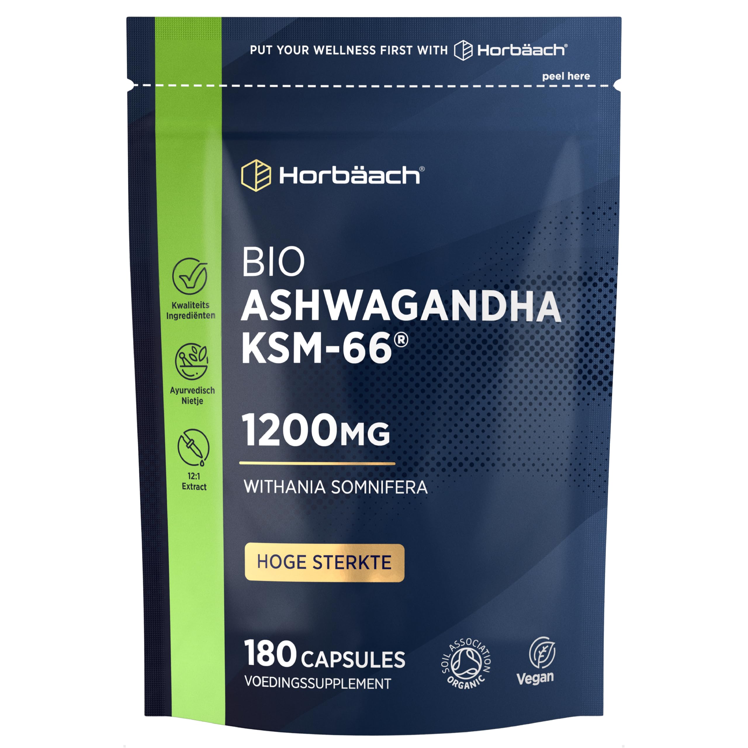 What is Ashwagandha? Ashwagandha is a small, yellow-flowered shrub native to India and Southeast Asia. For thousands of years, people have used ashwagandha to reduce stress, increase energy levels, and improve concentration. With the growing awareness of ashwagandha's health benefits, the demand for ashwagandha supplements has increased. They are now available in many forms, including gummies, tablets, pills, liquid drops, powder, and more. Why Choose Horbaach Ashwagandha? Horbaach's convenient, easy-to-swallow vegan capsules are packed with the highest quality, proven ingredients. Take three (3) capsules with a beverage of your choice anytime of the day, morning or evening, and enjoy the benefits of this natural supplement. INGREDIENTS: Bio-KSM Ashwagandha, Organic Brown Rice Flour, Capsule Shell (Hydroxypropyl Methylcellulose). DIRECTIONS FOR USE Take two (2) capsules, preferably with a meal. Do not exceed the stated dose. SAFETY WARNING Food supplements should not be used as a substitute for a varied and balanced diet and a healthy lifestyle. If you are pregnant, breastfeeding, taking medication, or have a medical condition, consult your doctor or healthcare professional before use. If an adverse reaction occurs, immediately stop using this product and consult your doctor. It is not intended for use by persons under the age of 18. LEGAL DISCLAIMER We make every effort to ensure that the information on this page is accurate at the time of its last modification. However, as we are continually reviewing and developing our products to meet the needs of our consumers, consumers, especially those with allergies and intolerances, should always check the labeling, warnings, and instructions on the product supplied before use or consumption. View MorePACKAGING MAY VARY: We are in the process of updating our packaging. If the product you receive looks different, you can be assured that the benefits remain the same. Additionally, if your product is labeled in English, you will find a removable label with six additional languages for your convenience. SUITABLE FOR: Horbaach Ashwagandha capsules are suitable for vegans and contain no artificial colours, flavors or preservatives. It is the perfect formula for men and women. CERTIFIED BY THE SOIL ASSOCIATION: Our product has been rigorously controlled and rigorously tested to obtain organic certification from the renowned Soil Association. OUTSTANDING: KSM has been studied in 22 "Gold Standard" human studies over the past 14 years and is the highest concentrated full spectrum extract on the market. HIGH STRENGTH: With 1200 mg KSM Ashwagandha and 5 Withanolides per daily dose.Ashwagandha KSM-66 Biologische 1200mg Capsules 180 Hoge Sterkte Veganistische Capsules Biologisch Ashwagandha KSM Extract Supplement van Horbaach Wat is Ashwagandha? Ashwagandha is een kleine struik met gele bloemen die inheems is in India en Zuidoost-Azië. Al duizenden jaren gebruiken mensen ashwagandha om stress te verminderen, het energieniveau te verhogen en de concentratie te verbeteren. Met het groeiende bewustzijn over de gezondheidsvoordelen van ashwagandha is de vraag naar ashwagandha-voedingssupplementen toegenomen. Ze zijn inmiddels in veel vormen verkrijgbaar, waaronder gummies, tabletten, pillen, vloeibare druppels, poeder en nog veel meer. Waarom kiezen voor Ashwagandha van Horbaach? De praktische, gemakkelijk door te slikken veganistische capsules van Horbaach zijn rijk aan de hoogste kwaliteit en beproefde ingrediënten. Neem drie (3) capsules met een drankje naar keuze op elk moment van de dag, 's ochtends of 's avonds, en geniet van de voordelen van dit natuurlijke supplement. INGREDIËNTEN Bio-KSM-ashwagandha, biologisch bruine rijstmeel, capsuleomhulsel (hydroxypropylmethylcellulose). GEBRUIKSAANWIJZING Neem twee (2) capsules, bij voorkeur bij een maaltijd. De aangegeven dosering niet overschrijden. VEILIGHEIDSWAARSCHUWING Voedingssupplementen mogen niet worden gebruikt als vervanging voor een gevarieerde en evenwichtige voeding en een gezonde levensstijl. Als u zwanger bent, borstvoeding geeft, medicijnen gebruikt of een medische aandoening heeft, raadpleeg dan vóór gebruik uw arts of zorgverlener. Als er een bijwerking optreedt, stop dan onmiddellijk met het gebruik van dit product en raadpleeg uw arts. Het is niet bedoeld voor gebruik door personen jonger dan 18 jaar. WETTELIJKE DISCLAIMER Wij doen ons uiterste best om ervoor te zorgen dat de informatie op deze pagina accuraat is op het moment van de laatste bewerking. Omdat we onze producten voortdurend herzien en ontwikkelen om aan de behoeften van onze consumenten te voldoen, moeten consumenten, vooral degenen die lijden aan allergieën en intoleranties, altijd de etikettering, waarschuwingen en instructies op het geleverde product controleren vóór gebruik of consumptie. Meer bekijkenVERPAKKING KAN VARIËREN: We zijn bezig met het updaten van onze verpakking. Als het product dat u ontvangt er anders uitziet, kunt u er zeker van zijn dat de voordelen hetzelfde blijven. Bovendien vindt u, als uw product in het Engels is gelabeld, een afneembaar etiket met zes extra talen voor uw gemak. GESCHIKT VOOR: Horbaach Ashwagandha-capsules zijn geschikt voor veganisten en bevatten geen kunstmatige kleur-, smaak- of conserveermiddelen. Het is de perfecte formule voor mannen en vrouwen. GECERTIFICEERD DOOR DE SOIL ASSOCIATION: Ons product is streng gecontroleerd en grondig getest om de biologische certificering van de gerenommeerde Soil Association te verkrijgen. UITSTEKEND: KSM is de afgelopen 14 jaar in 22 "Gold Standard"-studies bij mensen onderzocht en is het hoogstgeconcentreerde full spectrum-extract op de markt. HOGE STERKTE: Met 1200 mg KSM Ashwagandha en 5 Withanoliden per dagelijkse dosis.