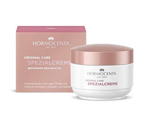 HORMOCENTA's special cream is a rich care specially developed for the needs of dry, demanding and mature skin. The long-lasting formula makes the skin noticeable. The vitamin complex of vitamins A, E and B5 protects your skin against cell-damaging free radicals and the consequences of premature skin aging. INSTRUCTIONS FOR USE Apply to face, neck and décolleté in the morning after cleansing and massage gently.Vitamin E supports the skin in neutralizing free radicals and prevents premature skin aging. Vitamin A stimulates cell metabolism and promotes skin regeneration. Provitamin B5 has a smooth and caring effect. The vitamin complex smoothes your skin and makes it appear more vital. Valuable thistle oil and beeswax have a normalizing effect on the lipid balance and provide relief from feelings of tension.Hormocenta Speciale crème, vitaliserende anti-aging verzorging, 50 ml ( gratis hologram-sticker) De speciale crème van HORMOCENTA is een rijke verzorging die speciaal is ontwikkeld voor de behoeften van de droge, veeleisende en rijpere huid. De duurzame formule maakt de huid merkbaar. Het vitamine-complex van vitamine A, E en B5 beschermt je huid tegen celschadelijke vrije radicalen en de gevolgen van vroegtijdige huidveroudering. GEBRUIKSAANWIJZING 's ochtends na het reinigen op gezicht, hals en decolleté aanbrengen en zachtjes inmasseren.Vitamine E ondersteunt de huid bij de neutralisering van vrije radicalen en voorkomt vroegtijdige huidveroudering. Vitamine A stimuleert de celhuishouding en bevordert de regeneratie van de huid. Provitamine B5 werkt glad en verzorgend. Het vitamine-complex maakt je huid glad en laat deze vitaler lijken. Waardevolle distelolie en bijenwas werken normaliserend op het lipidehuishouden en zorgen voor verlichting van spanningsgevoelens.