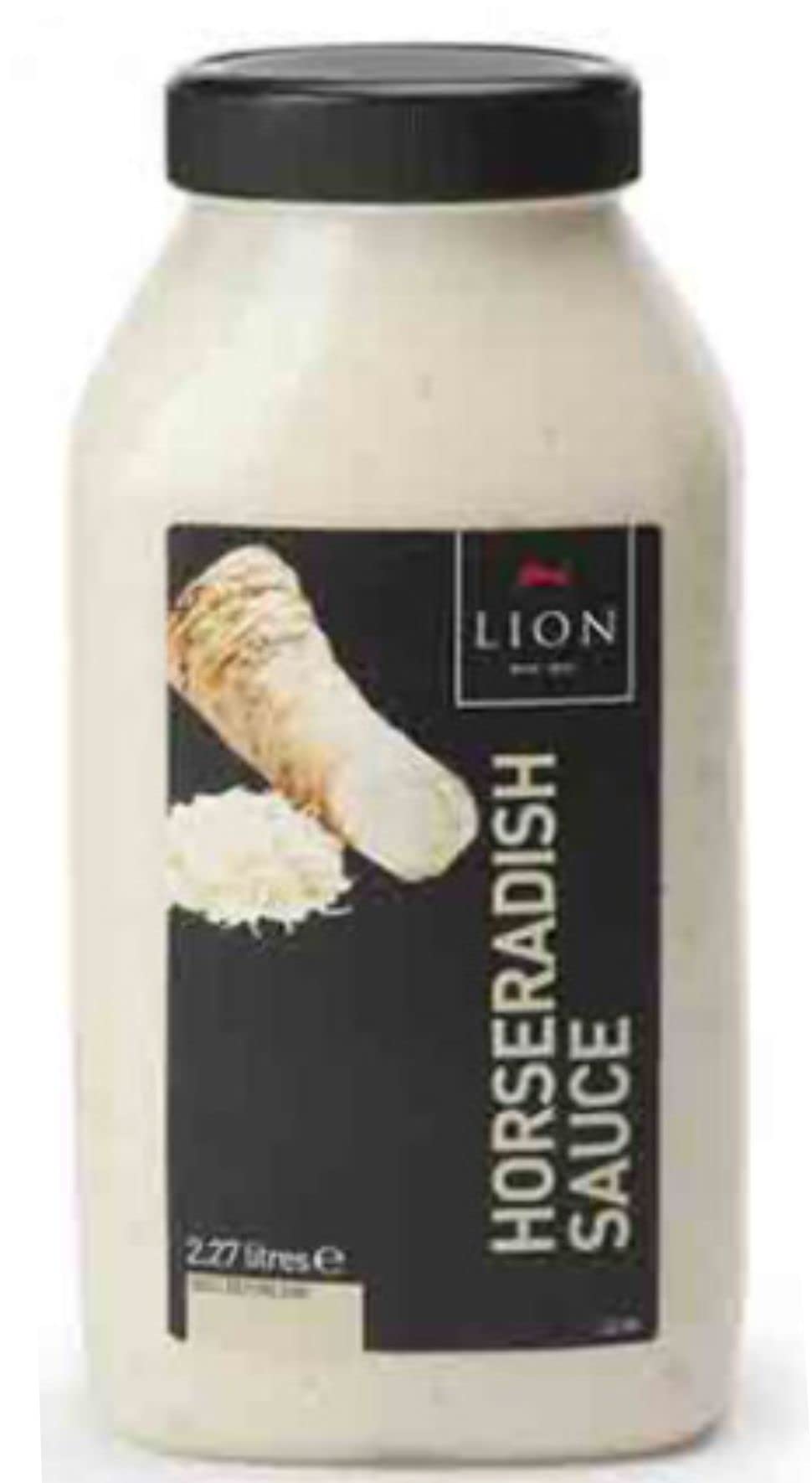 Ingredients Water, Rapeseed Oil, Dried Horseradish (9 ), Sugar, Salt, Acidity Regulator (Acetic Acid), Skimmed MILK Powder, Stabiliser (Xanthan Gum), EGG Yolk Powder, MUSTARD Flour, Colour (Titanium Dioxide). Directions for Use A perfect addition to beef meal. Storage Instructions Store in a cool dry place. Refrigerate after opening and consume within 4 weeks from opening and by date BBE. Suitability Vegetarian suitable: Yes Coeliacs suitable: Yes Hfss product: null Allergens Contains eggs: Yes Contains milk: Yes Contains mustard: YesHorseradish sauce adds flavour to your meals , a fantastic addition to sandwiches , salads and roast dinner, sausage and mash, cheese, also surprisingly good with fish. Can be used at home, cafes, restaurants and in the workplace and family parties . Especially a great adittion to any beef this condiment sauce provides you with a rish and warming taste. Lion horseradish condiment sauce a high quality horseradish delicious accompaniment to roasts, steaks, and sandwiches a rich and warm flavor. marinade or dipping sauce fantastic with Sunday dinner .A sauce for every occasion. Directions for Use A perfect addition to beef meal. Storage Instructions Store in a cool dry place. Refrigerate after opening and consume within 4 weeks from opening and by date BBE. A pale creamy off white in colour, viscous, spoonable sauce with visible particulates of horseradish flakes. A spoonable, viscous sauce with textured particulates of horseradish flakes. Taste: A creamy, medium hot horseradish sauce, slightly sweet and slightly salty, with distinct earthy horseradish flavour, and vinegary and eggy notes. Aroma: A distinct horseradish aroma with sweet, eggy and creamy and vinegary notes. Lion horseradish condiment sauce delicious accompaniment to roasts, steaks, and sandwiches a rich and warm flavor.