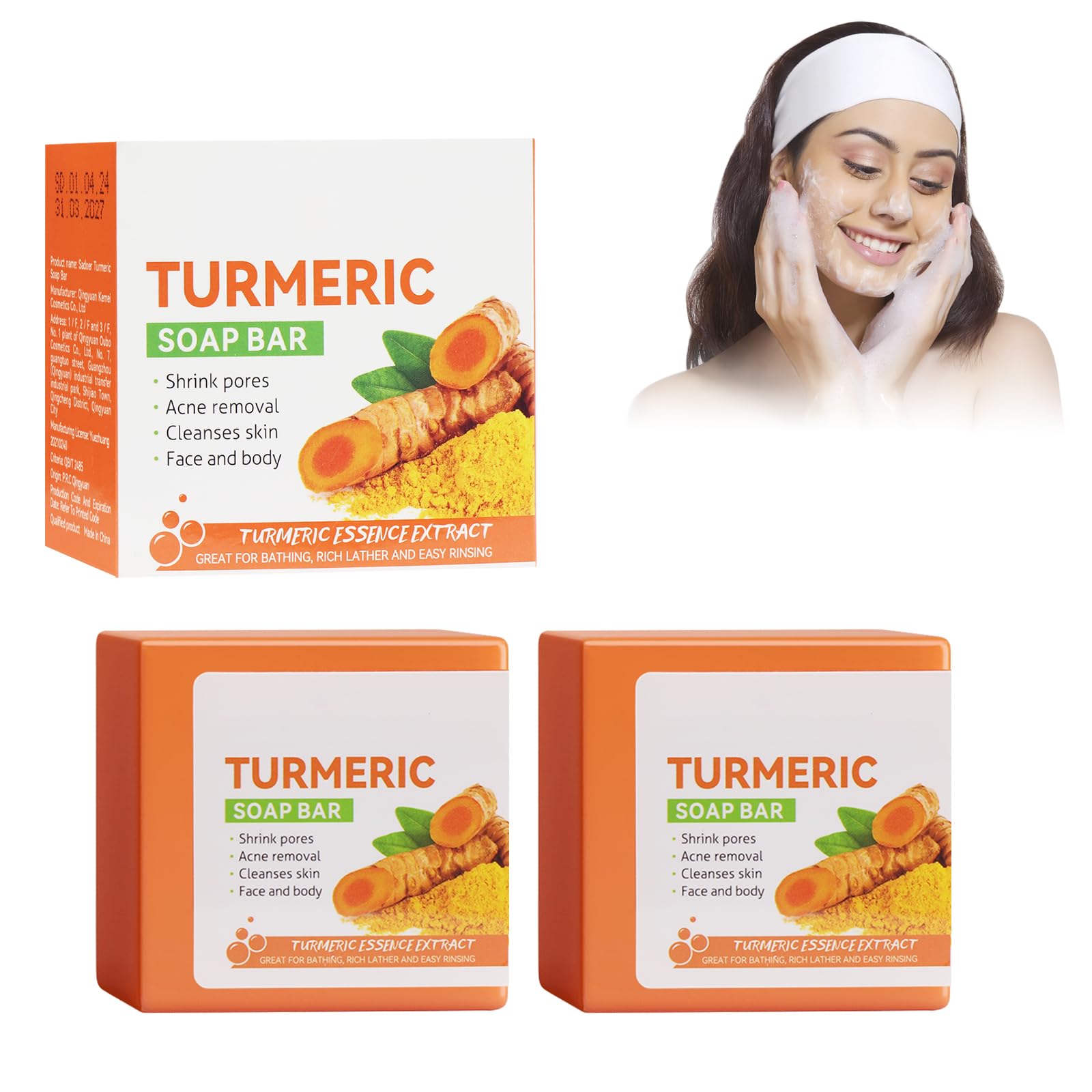 After-sales service: If you have any questions, please contact us promptly. Our professional customer service staff will contact you within 24 hours to answer your questions. Suitable skin type: Our turmeric soap is suitable for all skin types and can be used for oily, dry, and combination skin. Use it to cleanse your body and face for a healthy and balanced complexion. How to use: Wet your body and face, then wet the soap and rub it until you get a rich lather (or apply the soap directly to your body). Apply the lather to the areas you wish to treat, massage and rub, and then rinse with water. Cleansing soap: Turmeric soap has a rich lather that penetrates deep into the pores. It effectively cleanses the face and body of impurities, removes oil and dirt, and leaves your skin feeling fresher. Brightening Complex: Our soap is rich in turmeric, which can effectively reduce hyperpigmentation, lighten spots, improve dull skin, even out skin tone, brighten skin tone, and make skin clearer and more radiant.Savon curcuma, savon à la curcuma, savon à la curcuma, savon éclaircissant au curcuma, savon anti-taches au curcuma, nettoyant, hydratant et éclaircissant, savon de bain pour le visage et le corps (2 2 pièces.Service après-vente : si vous avez des questions, veuillez nous contacter à temps, le personnel du service client professionnel vous contactera dans les 24 heures pour répondre à vos questions. Type de peau approprié : notre savon au curcuma est adapté à tous les types de peau, peut être utilisé pour les peaux grasses, sèches et mixtes. Utilisez-le pour nettoyer votre corps et votre visage pour un teint sain et équilibré. Comment l'utiliser : mouiller le corps et le visage, puis mouiller le savon et le frotter jusqu'à obtenir une mousse dense (ou appliquer le savon directement sur le corps), appliquer la mousse sur les zones à traiter, masser et frotter et laver avec de l'eau. Savon nettoyant : le savon au curcuma a une mousse dense qui pénètre en profondeur dans les pores. Nettoie mieux le visage et le corps des impuretés, élimine la graisse et la saleté et donne une peau plus fraîche. Complexe lumineux : notre savon est riche en curcuma, qui peut efficacement réduire l'hyperpigmentation, éclaircir les taches, améliorer la peau mate, uniformiser le teint de la peau, éclairer le teint de la peau, rendre la peau plus claire et éclatante.