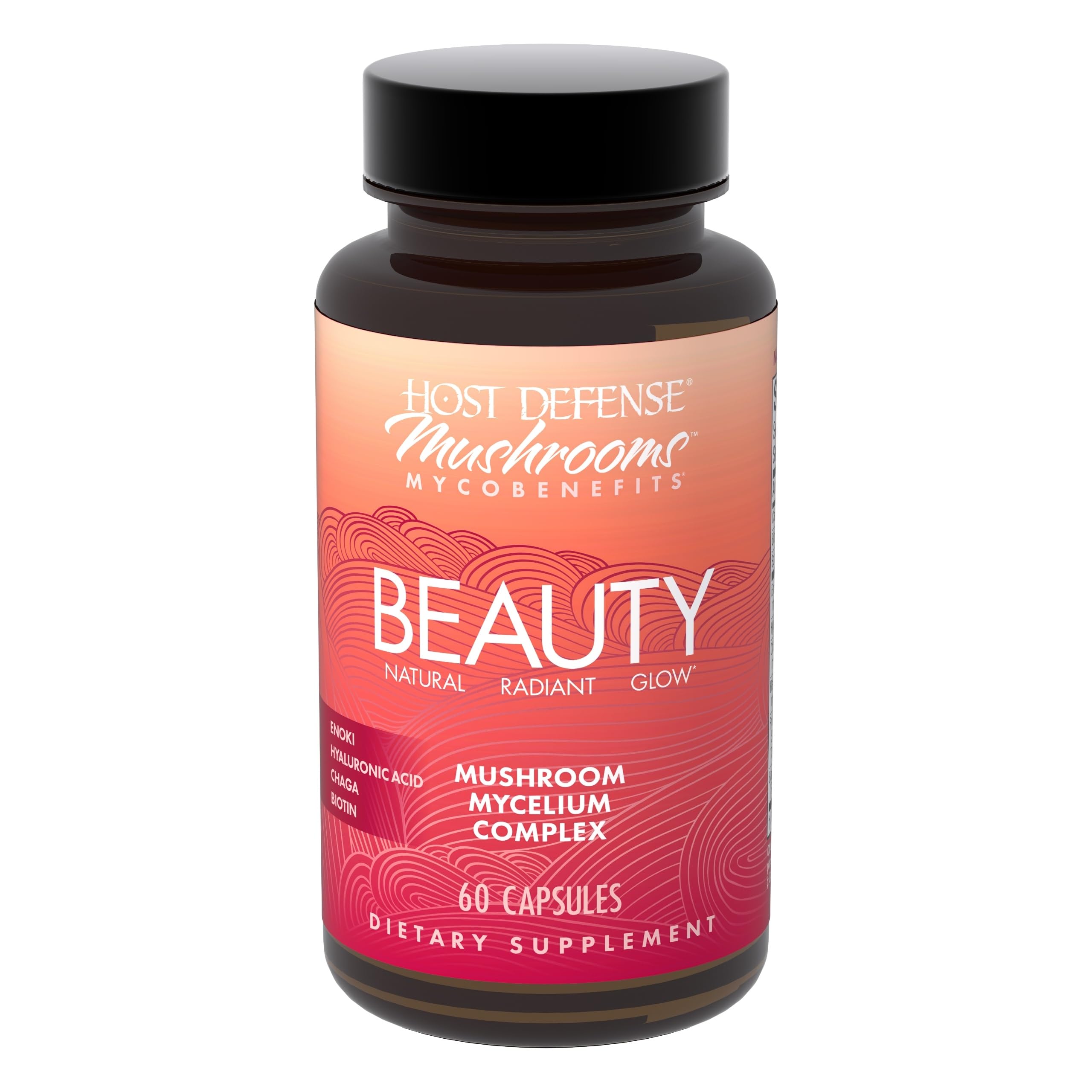 Beauty Support Supplement: As a dietary supplement, take 2 mushroom capsules once daily with food or on an empty stomach, or as recommended by your healthcare advisor. About MycoBenefits: The MycoBenefits line from Host Defense embraces the combined synergy of mushroom mycelium with well-known ingredients like herbs, vitamins, and minerals to offer benefits designed to target your specific needs*. About Host Defense: Host Defense Mushrooms was founded by renowned mycologist Paul Stamets; our mushroom mycelium is non-GMO, gluten-free, and grown in the USA*. Mushroom Supplement for Hair, Skin & Nails: Our blend of Chaga, Enoki, Reishi, biotin, and hyaluronic acid supports radiant skin, strong nails, and healthy hair*. Mushroom Supplement for Beauty Support: MycoBenefits Beauty supports healthy hair, skin, and nails by aiding tissue health, hydration, and strength*.