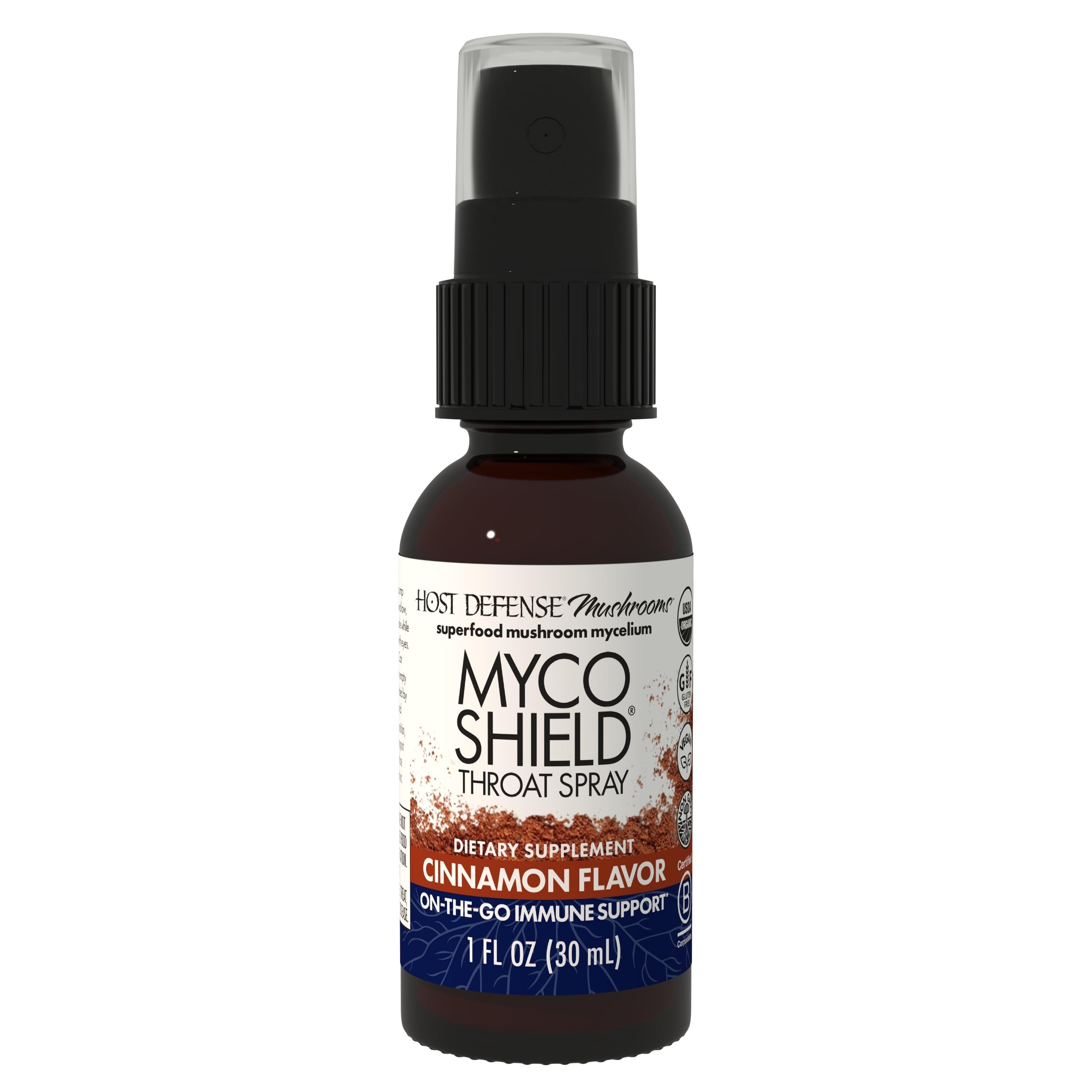 Host Defense MycoShield Throat Spray - Immune Health Support - Dietary Mushroom Supplement with Chaga, Reishi, Turkey Tail & More - On-The-Go Immune Support - Cinnamon Flavor, 1 fl oz (71 Servings)* Cinnamon 1 Fl Oz (Pack o